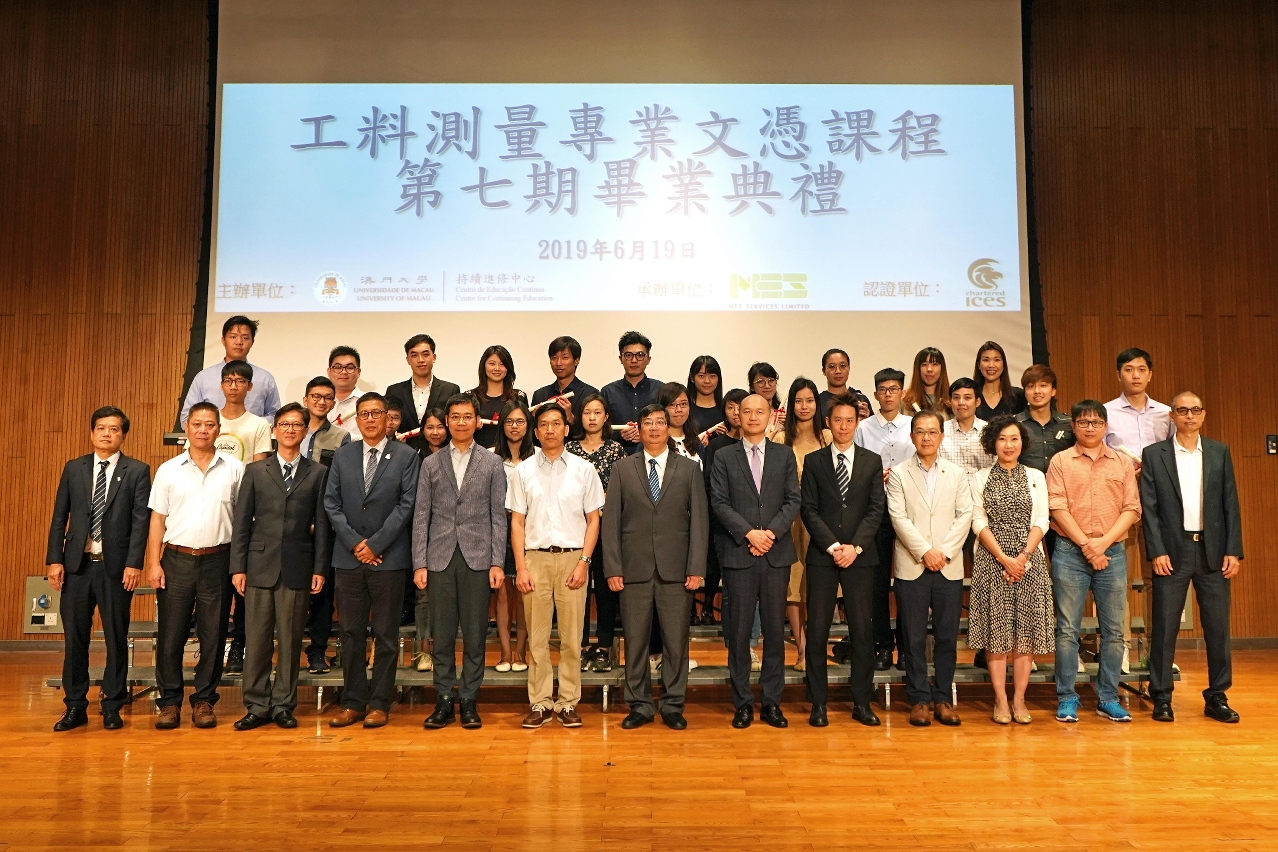 澳门大学持续进修中心举行第七期“工料测量专业文凭课程"毕业典礼,共有27名学员顺利取得文凭,同时该文凭亦获英国特许土木工程测量师学会专业认可。