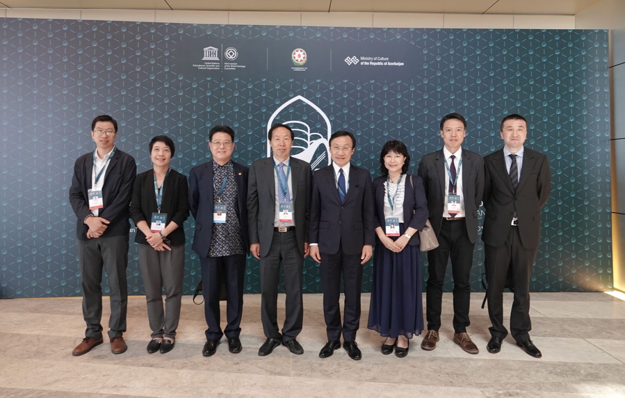 • 社会文化司司长谭俊荣与国家文物局局长刘玉珠在第43届世界遗产大会上