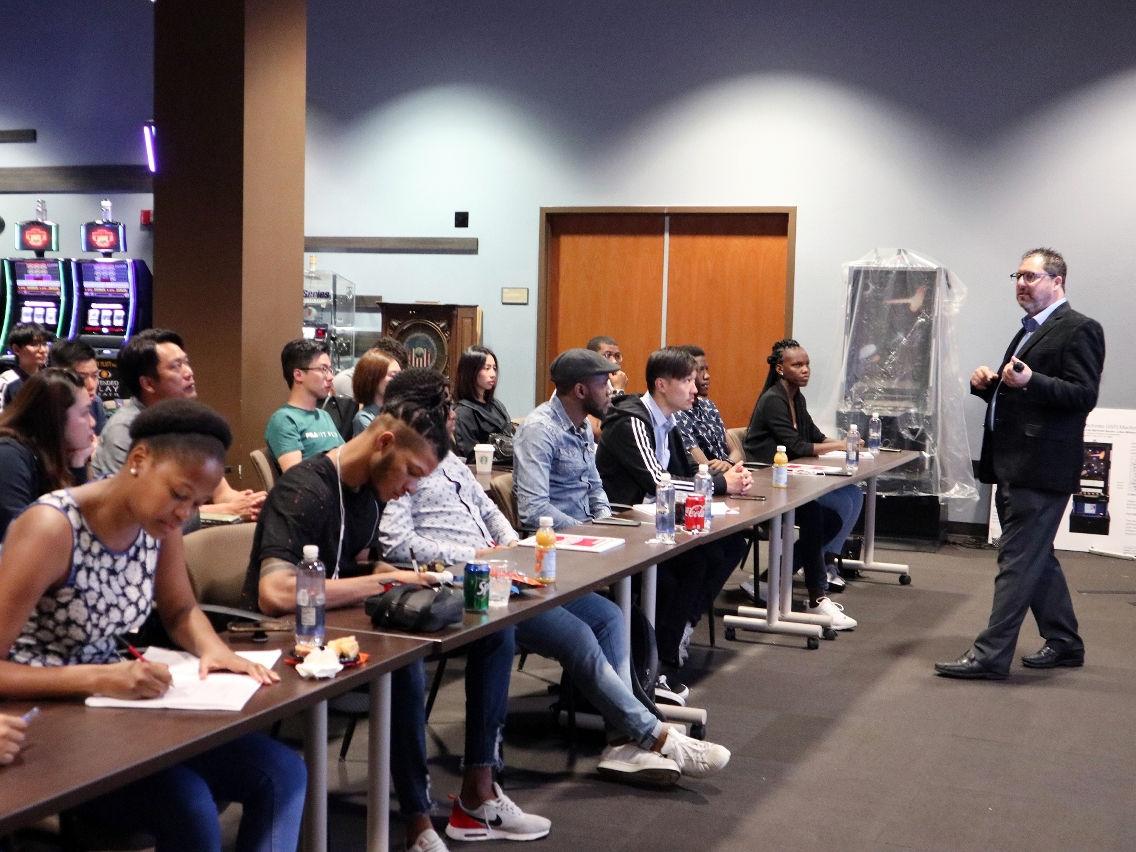 内华达大学国际博彩监管中心学者和业界专家为该批交流学生授课,内容涵盖美国博彩发展历史、 博彩业的最新议题 、娱乐场的未来发展趋势、电子竞技投注、娱乐场失误产生的顾客诉讼赔偿及个案、全球体育博彩投注的运作、娱乐场骗案、娱乐场禁足令及黑名册等多项课题。除参加课堂外,交流生一行还实地考察当地多家着名博彩企业、博彩科技公司和娱乐表演团体,与公司管理团队会面和交流,亦获表演团体的邀请,欣赏娱乐表演节目,深度了解拉斯维加斯非博彩元素的发展。