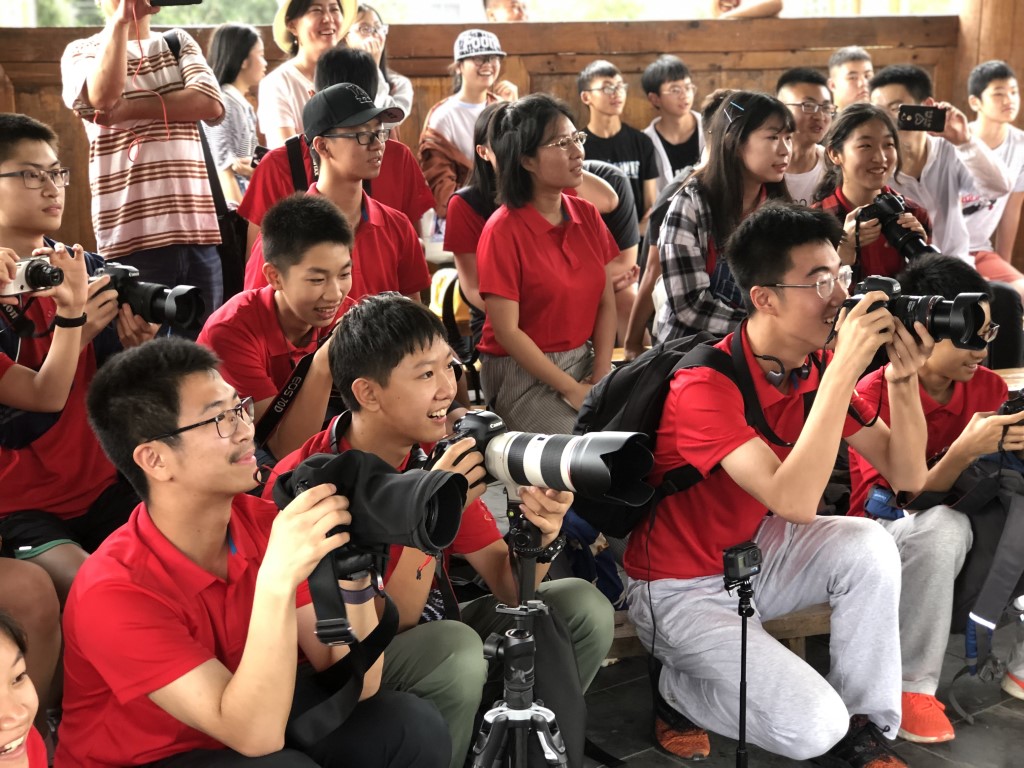 来自澳门的十名学生抵达从江县后,与来自北京第十一中学的十名学生和工作人员会合,随即前往黔东南具代表性的占里侗寨开展拍摄工作。学生们置身于贵州原生态的茂密丛林,被侗寨的鼓楼建筑及侗族民族服饰所吸引,大家全情投入边走边拍,互相交流拍摄技巧。其后在两地学生的热情参与下,团队破冰活动顺利进行,两地学生先“一对一”结成对子,并在活泼有趣的破冰游戏中加深彼此瞭解,增进互相之间的友谊。破冰活动结束后,学生们参加了“民俗文化与摄影”讲座。