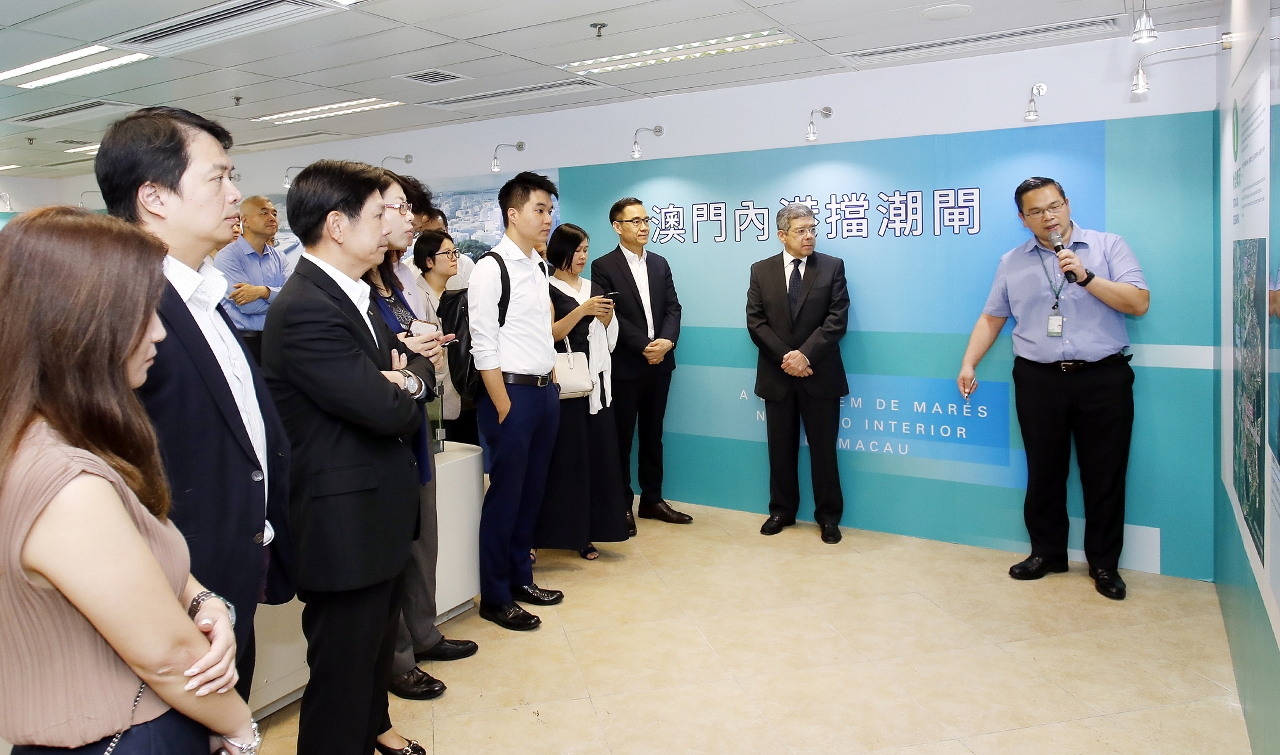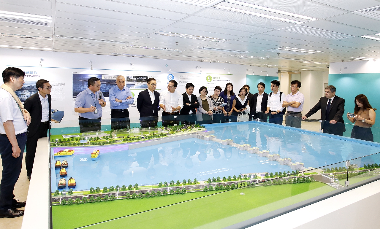 立法会土地及公共批给事务跟进委员会一行于今(16)日到土地工务运输局,参观内港挡潮闸模型,了解项目概况和挡潮闸运作流程。运输工务司司长罗立文及土地工务运输局代局长刘振沧作介绍。
