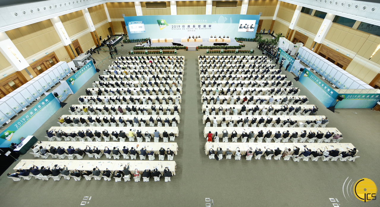 2019行政长官选举投票站设于澳门东亚运动会体育馆C区2楼澳门国际会议中心,整个选举程序于上午10时开始,历时约1小时15分。400名选举委员会委员全体出席投票,当中有效票392张、空白票7张、废票1张。