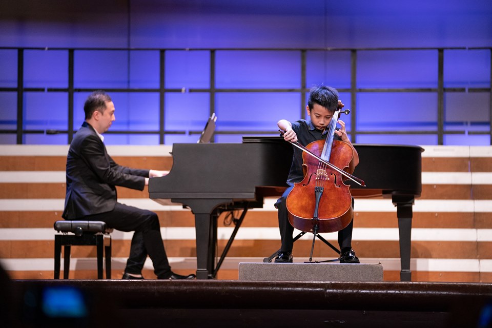 韩博文和伊露娜同学在广东赛区比赛中(广州星海音乐学院附中举行)先拔头筹,分别赢得了大提琴省级少年B组及少年C组第一名,顺利晋级总决赛。两位同学在北京的总决赛中凭藉高超的演奏技艺,力压群雄,得到评审团一致肯定,再次分别获全国级少年B组,少年C组第一名。