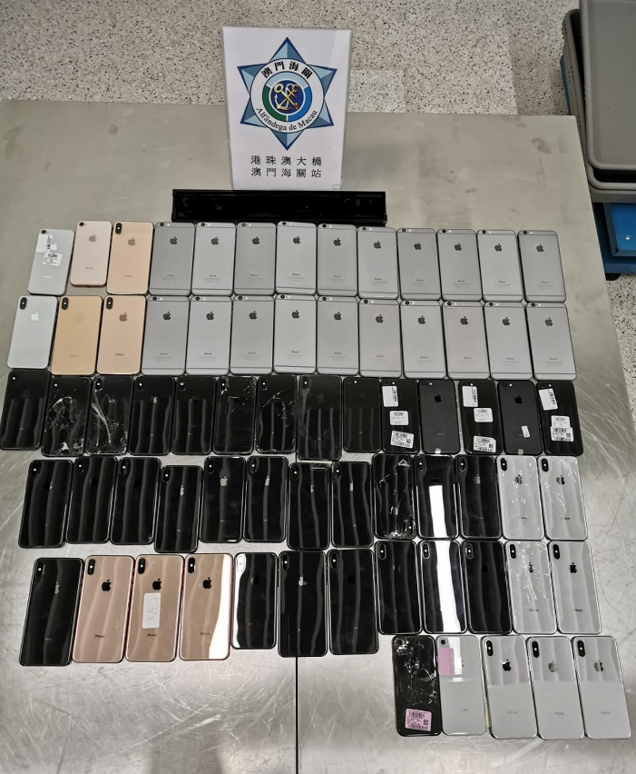 于8月29日下午,驻守外港码头的关员对一名由香港乘船入境澳门的女性旅客进行检查,透过X光机检测发现其背包内藏有可疑物品,经检查后证实为旧智能电话,共54部,总值约港币5万元。