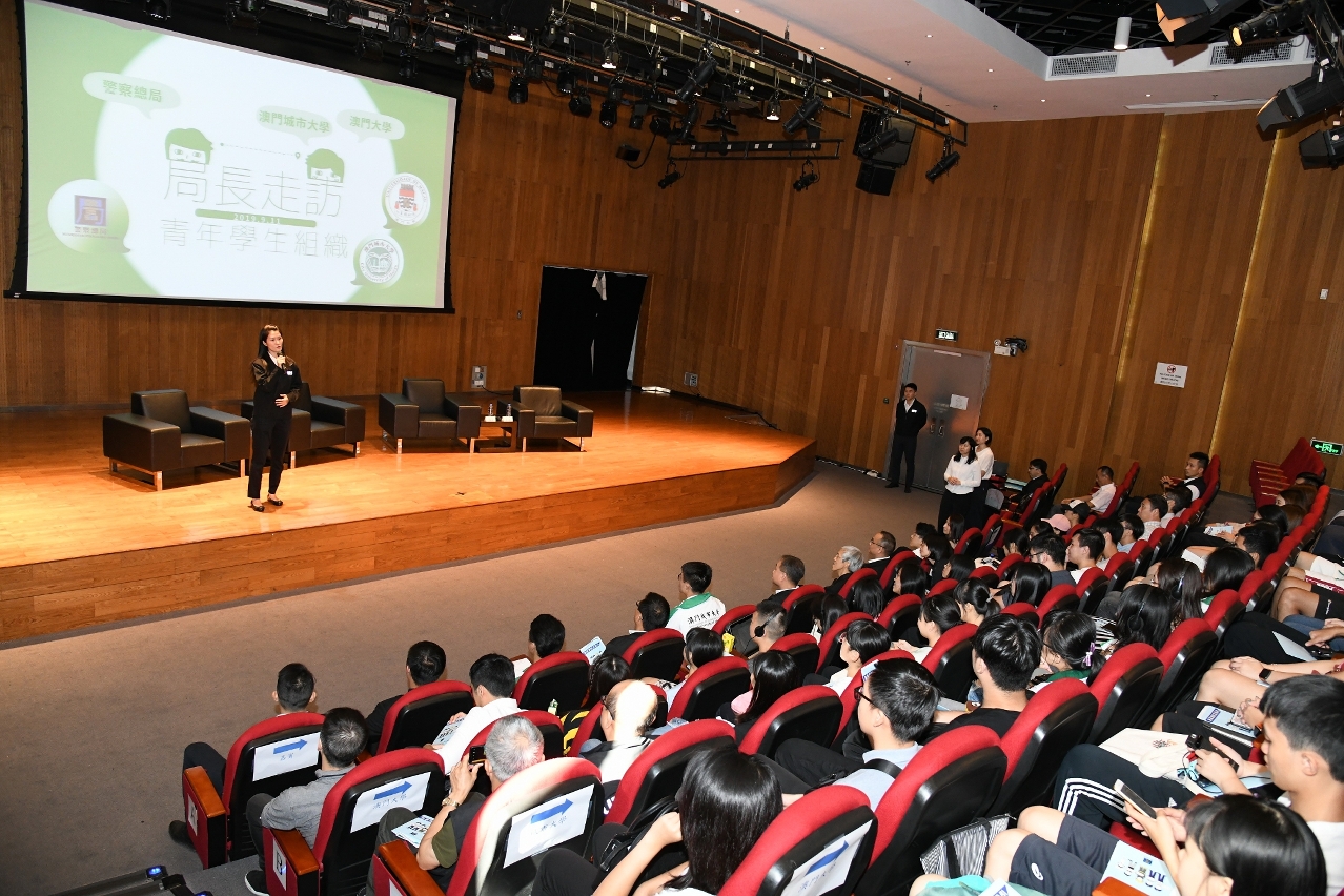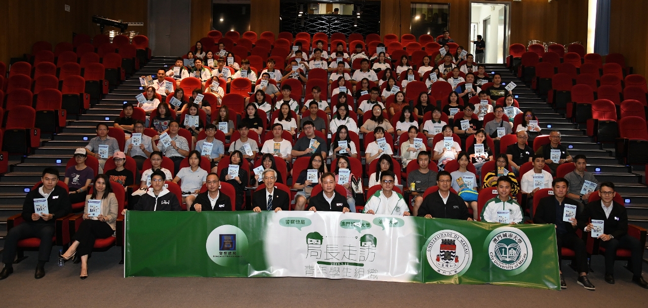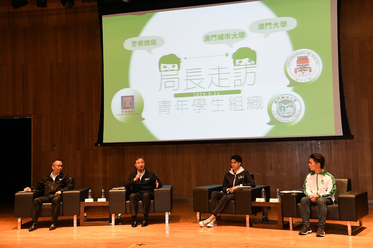为鼓励本澳青年人积极参与社会事务,加深对民防事务及警务工作的瞭解,警察总局局长马耀权、局长助理吴锦华于9月11日以「警民共防」为主题,与澳门大学及澳门城市大学共约100名学生展开真情对话。