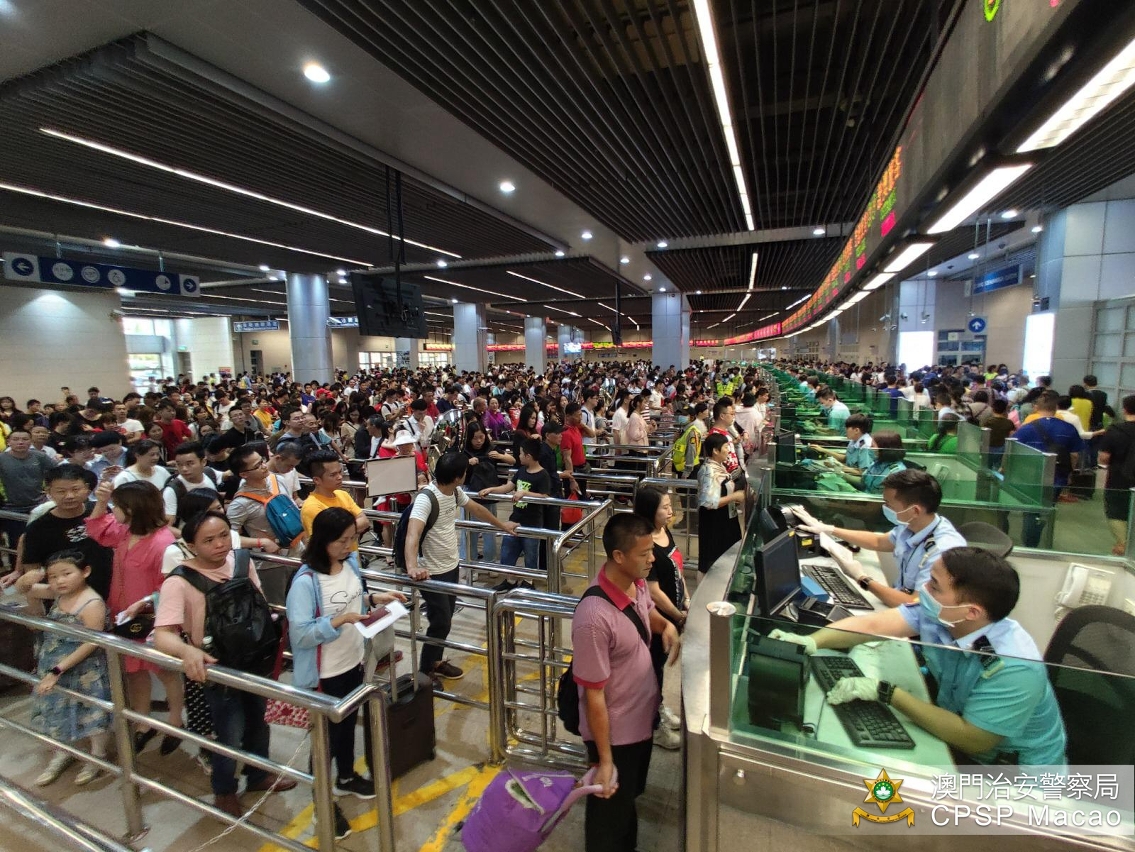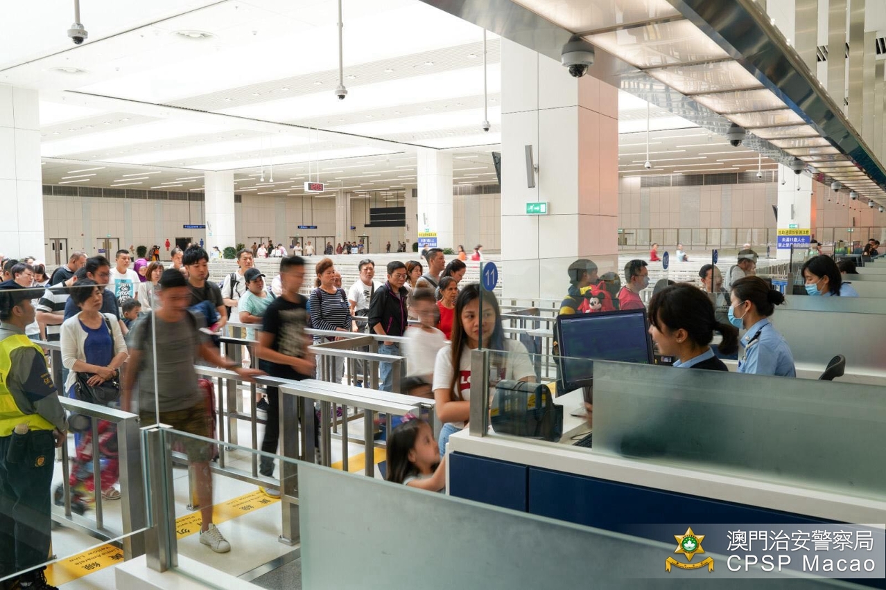 治安警察局在中秋公众假期执行各项警务工作的部署,维持出入境及巿面秩序,三天假期各口岸出入境人次较去年有所增长,整体通关秩序良好。