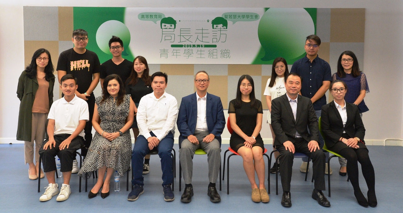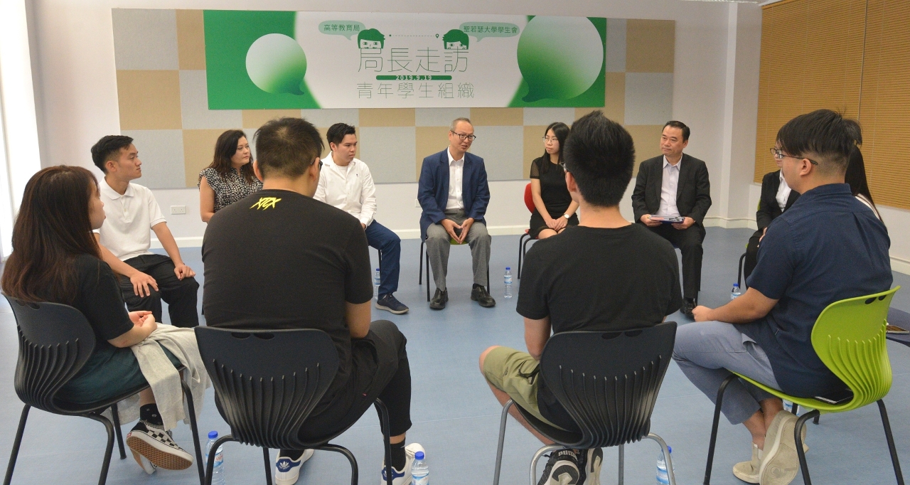 高等教育局苏朝晖局长日前走访圣若瑟大学,与学生会骨干成员举行座谈,听取他们对大专学生工作的想法和建议,并寄语学生多关心社会发展,把握时代发展脉搏,从而更好地装备自己,提升竞争力。