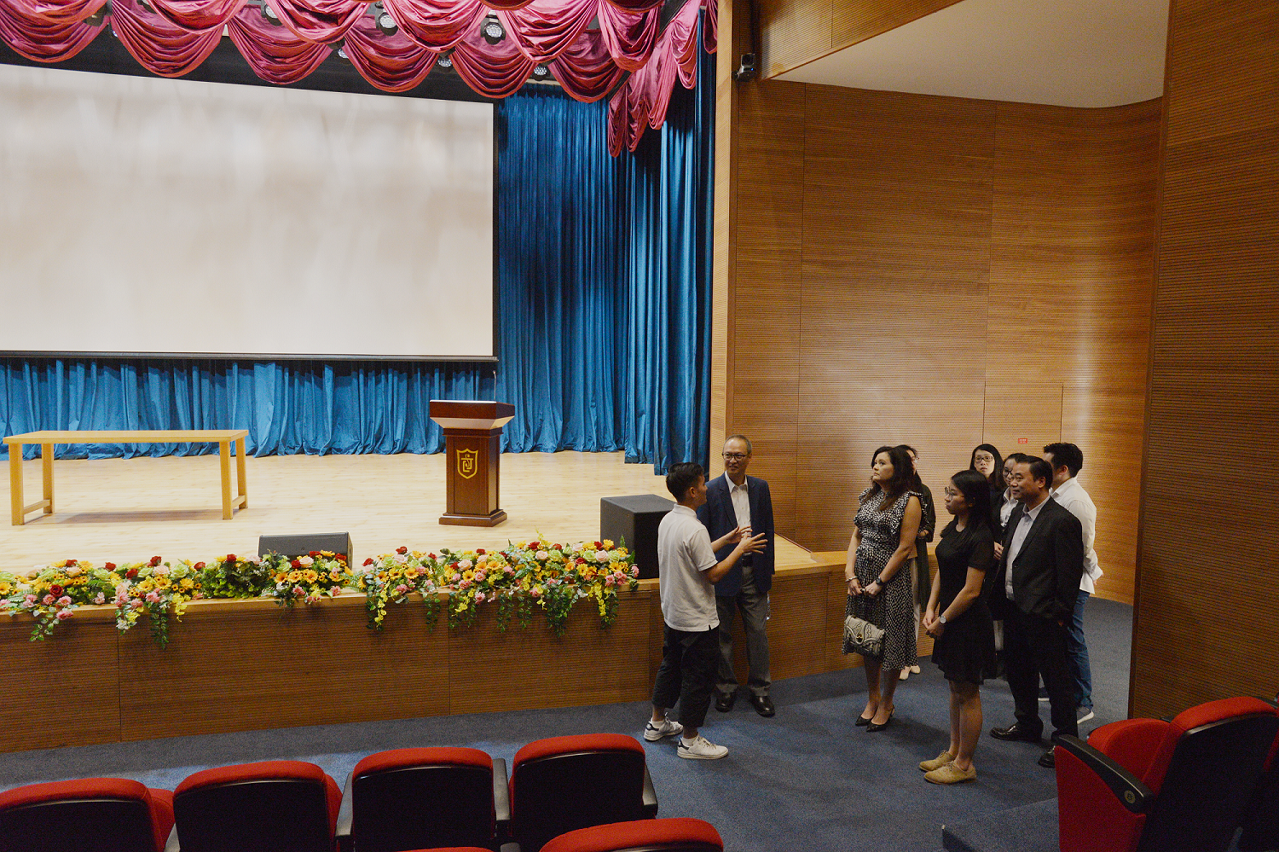 苏局长一行在圣若瑟大学学生会会员大会谭慧瑜主席、欧阳文浩副主席、刘陶基理事长的陪同下,参观圣若瑟大学校内活动场地、花地玛百年显现纪念堂,瞭解学生的课余生活。