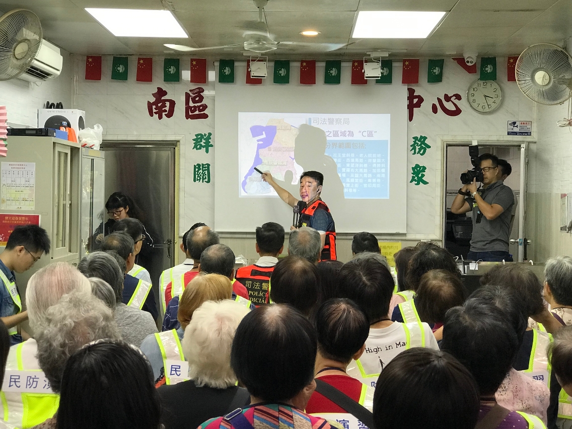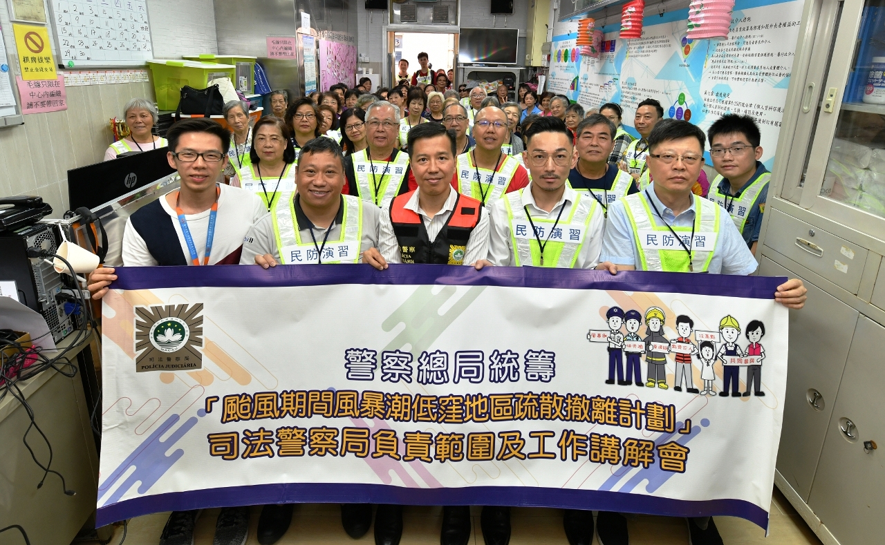 本澳正值台风季节,为了加强居民的防灾避险意识,确保居民于台风期间风暴潮来袭时,能够按照保安当局指示快速、安全、有序撤离,司法警察局在警察总局统筹下,与社会工作局再次合作举办 “台风期间风暴潮低洼地区疏散撤离计划”讲解会及模拟演习,并公开接受居民报名参与。司警局冀透过讲解会和模拟演习,让市民清晰瞭解撤离计划内容,主动配合警方的撤离工作,同时提升执行撤离工作人员和指挥中心的沟通、协作能力,令执行撤离计划的工作更加畅顺。