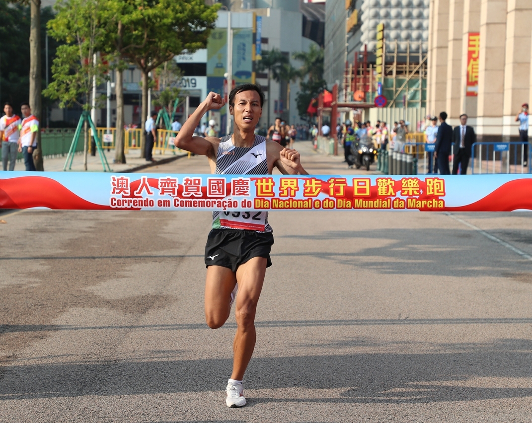 由澳门特别行政区政府主办、体育局承办、中国澳门田径总会协办之“2019澳人齐贺国庆世界步行日欢乐跑”活动,今日(1日)上午八时十五分于金莲花广场前举行,由澳门特别行政区代理行政长官黄少泽先生主持起步礼,吸引一万八千名参加者在礼炮声中愉快地起步。