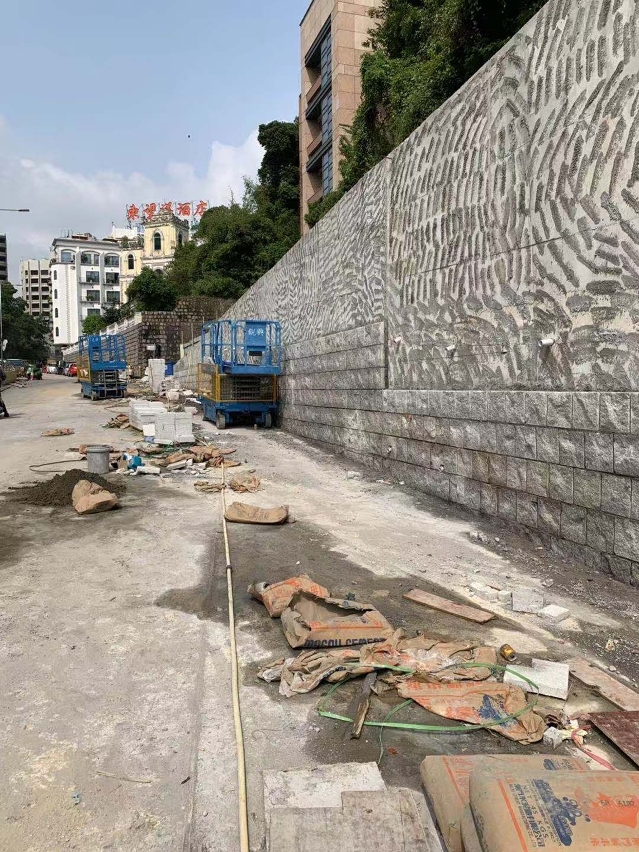 市政署于松山晨运斜坡进行挡土墙维修工程,主体墙身结构已基本完成,海边马路将于十月十一日起具条件有限度开放行车,敬请市民留意现场交通安排。