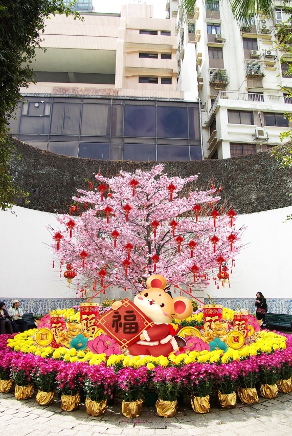 另外,市政署大楼亦布置充满农历新年气氛的灯饰及花艺装饰,大堂以大型生肖鼠公仔、牡丹、桃花装饰布置作为设计主体,配以金元宝及金钱等装饰,增添浓厚的节日气氛。花园中央则装置生肖鼠公仔并以大型桃花树及花坛配衬,左右两边花圃位置亦有生肖鼠公仔及中式通花装饰布置。花园整体配以新年挂饰、灯笼等饰物作点缀,以及用金钱饰物、花卉图案装饰增强视觉效果,以祝贺鼠年吉祥。