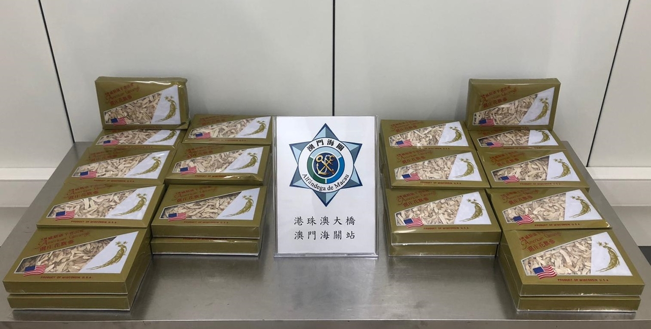 另外,海关人员日前在港珠澳大桥澳门口岸截查一名入境人士,透过X光机检查其携带的行李,发现内藏一批属《濒危野生动植物种国际贸易公约》(CITES) 附录 II内受保护之西洋参片,合共30盒,连包装约重16公斤。