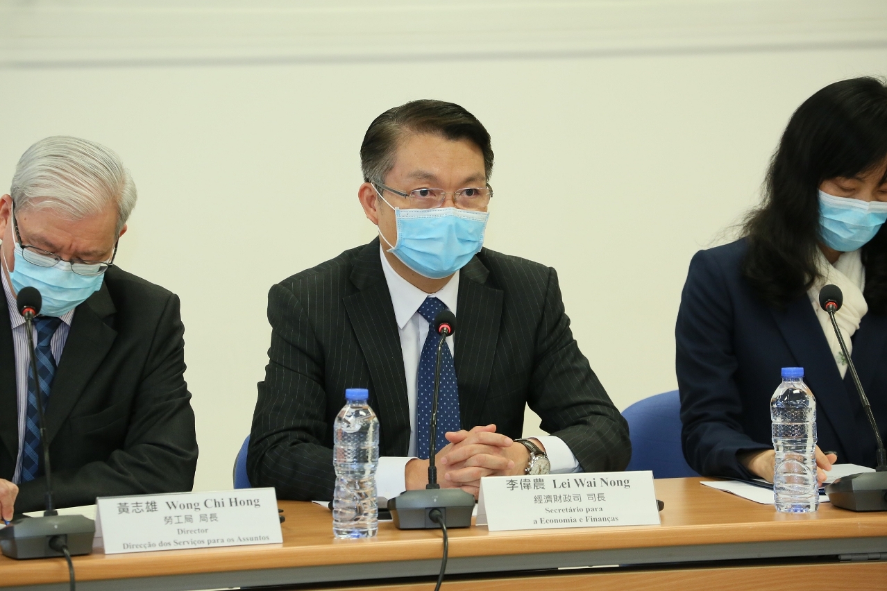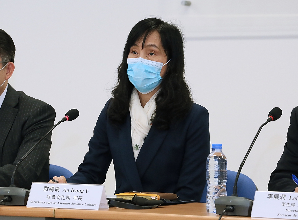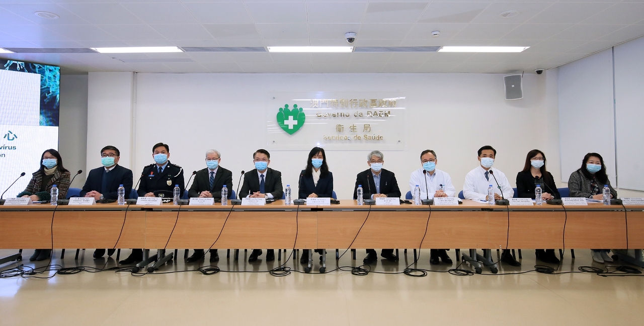 新型冠状病毒感染应变协调中心(下称应变协调中心)于今(2)日举行「新型冠状病毒最新情况及本澳各项防控措施」记者发布会,社会文化司欧阳瑜司长、经济财政司李伟农司长、卫生局李展润局长、劳工局黄志雄局长、仁伯爵综合医院李伟成医务主任、罗奕龙医务主任、疾病预防控制中心梁亦好协调员、治安警察局行动策划厅赵崇远厅长、教育暨青年局教育厅江毅厅长、旅游局执照及监察厅陈露厅长、社会工作局家庭及社区服务厅李丽萍厅长共同会见传媒。