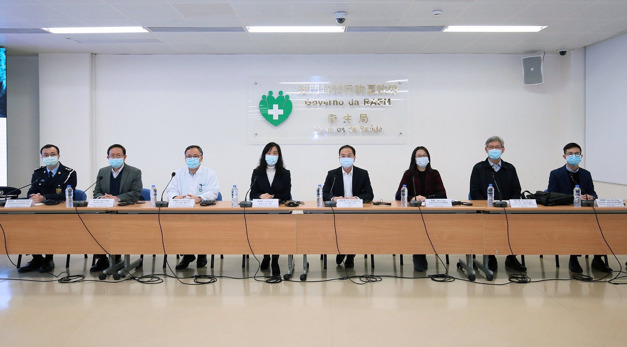 新型冠状病毒感染应变协调中心(下称应变协调中心)于今(3)日举行「新型冠状病毒最新情况及本澳各项防控措施」新闻发布会,社会文化司欧阳瑜司长、行政公职局高炳坤局长、仁伯爵综合医院李伟成医务主任、疾病预防控制中心主任林松医生、治安警察局居留及逗留事务厅黄剑虹代厅长、旅游局执照及监察厅陈露厅长、社会工作局社会互助厅蔡兆源厅长、高等教育局资源及学生福利处岑晓东处长共同会见传媒。