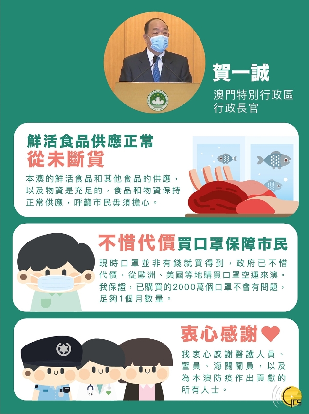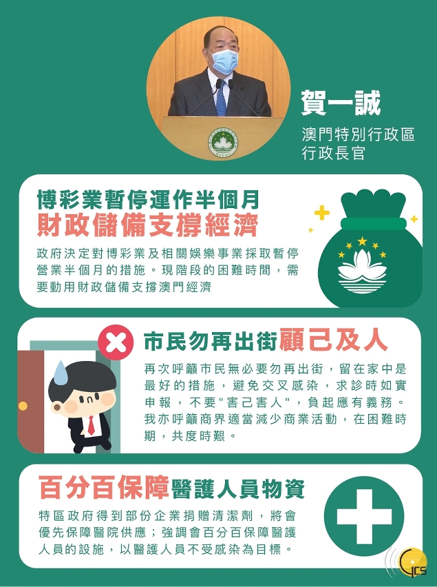 【图文包】行政长官贺一诚:博彩业停运半个月 吁公众留家防疫