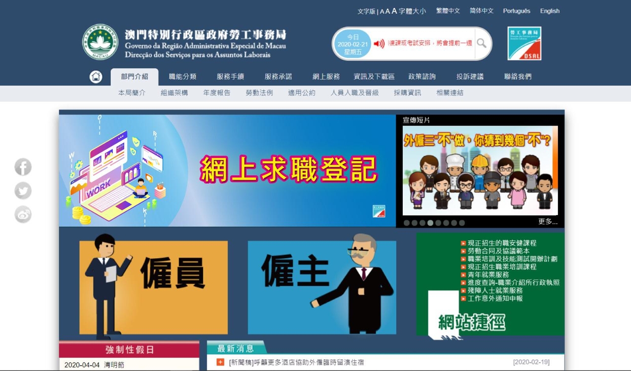 劳工事务局亦高度关注本澳居民的就业情况,若本澳居民于疫情期间遇到就业困难,局方必会全力提供就业支援及协助。居民可于办公时间致电专线8399 9834与本局职员联络。亦可于任何时间登入劳工局网站www.dsal.gov.mo进行网上求职登记,局方会因应实际情况,尽快安排合适配对,平衡人资供需。同时,局方亦可因应市民需要,提供适切的培训课程,藉此提升技能或协助市民转业,以达至保障市民持续就业的目的。
