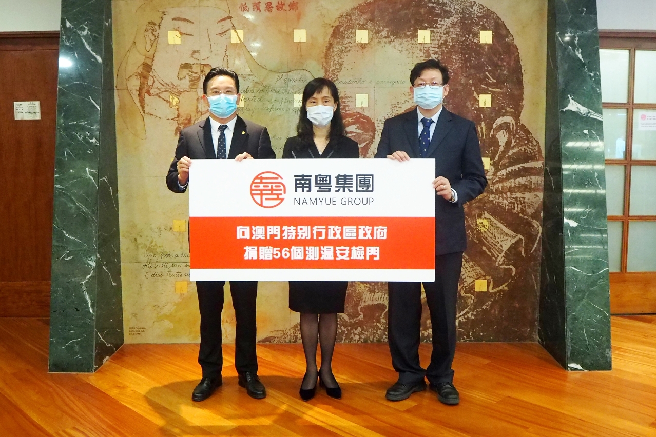 南粤集团今天(16日)向特区政府捐赠测温安检门共56台,由社会文化司司长欧阳瑜代表接收。相关设备将陆续安装于澳门中、小学校,覆盖全澳500人以上的非高等学校,大力支持学校防疫屏障的建设。该集团早前还向特区政府卫生部门捐赠了上述设备。