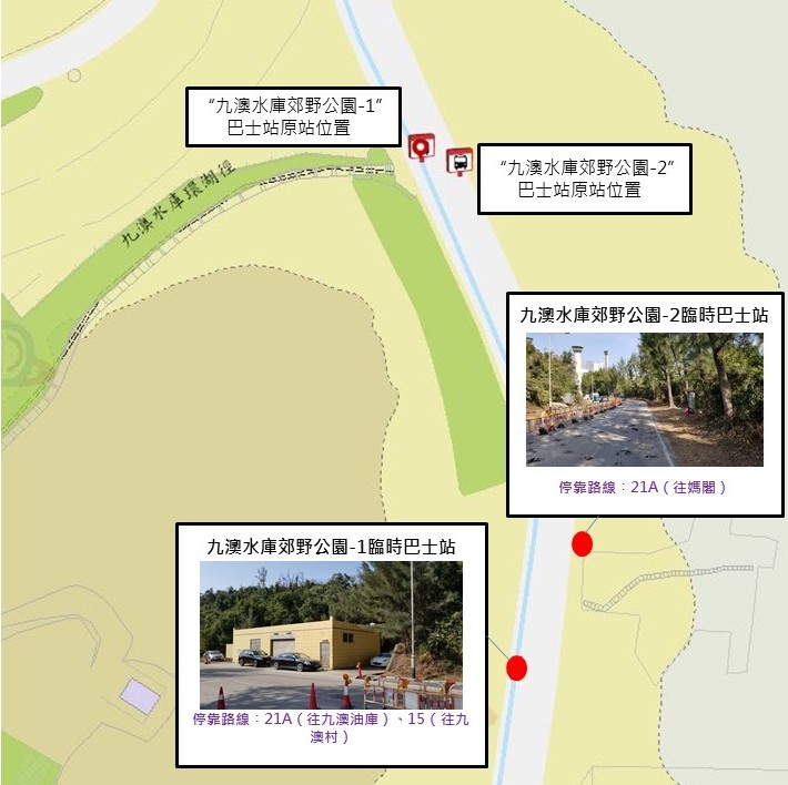 | “九澳水库郊野公园-2"站往九澳高顶圆形地方向迁移约80米 |