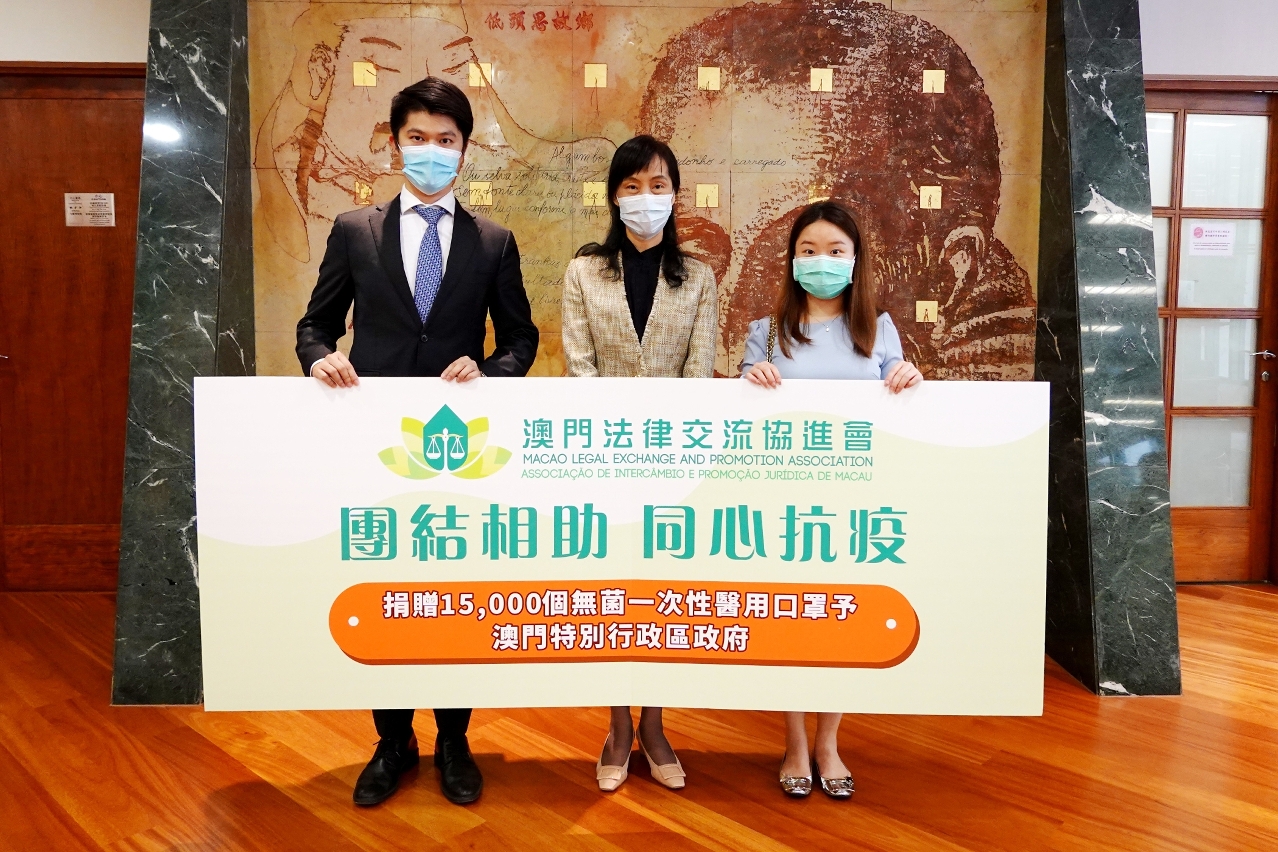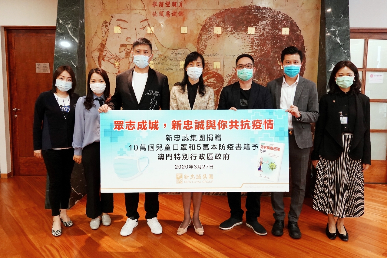 特区政府感谢新忠诚集团有限公司、澳门海峡女企业家协会及澳门法律交流协进会慷慨捐赠口罩,关爱澳门市民,积极助力政府的抗疫防疫措施;特区政府并期望继续得到社会各界支持。
