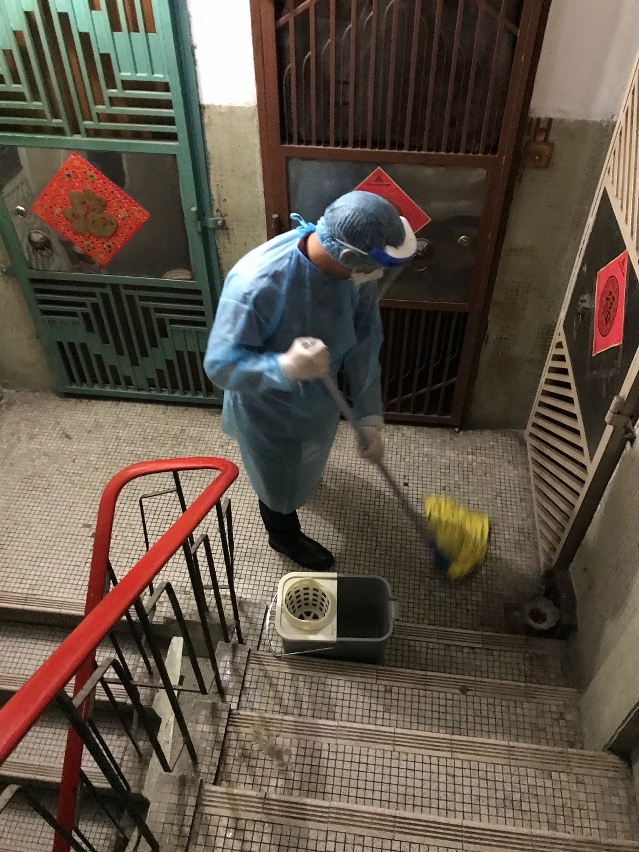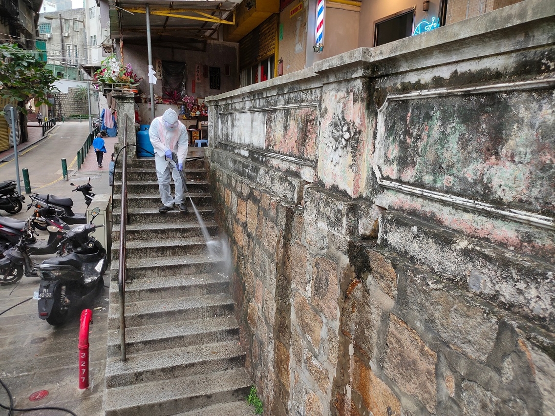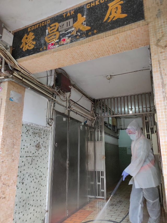配合新型冠状病毒肺炎的防控工作,市政署于三月三十日协调清洁专营公司及外判清洁加派人手,对一宗香港确诊者在澳门活动期间的居所及曾到访的大厦,进行大型的清洁及消毒工作,包括两座大厦周边的街道、大厦门口及各楼层楼梯等公用空间,尽力减低传染病传播的条件。