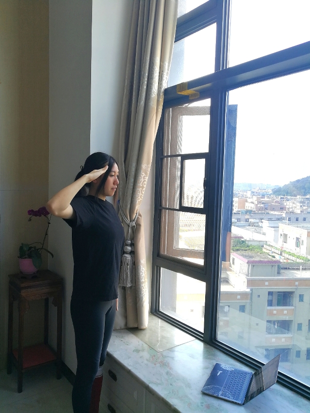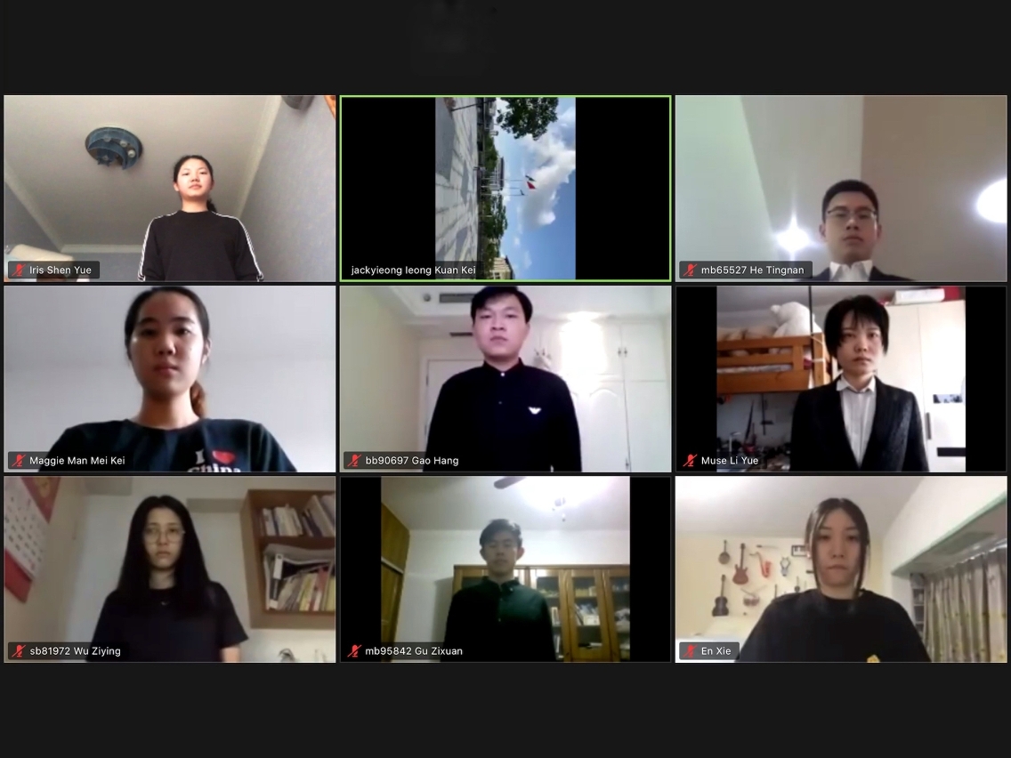 “齐心抗疫•立志精进” 五四青年节升旗仪式今天上午八时在澳大行政楼前莲花广场举行,澳大校长宋永华、副校长苏基朗、学生事务长彭执中、校长办公室主任汪淇、全球事务总监甄勇、学生资源处处长张学森等出席。原本能容纳几千名学生的莲花广场虽然只有寥寥数人,但澳大师生同一时间在书院、研究生宿舍、办公楼或家中,通过手机、电脑等多媒体萤幕,共同参与这场庄严而特殊的“云直播”升旗仪式。“请全体肃立,升国旗,奏唱国歌!”在队长张帝的口令下,伴随着雄壮的国歌,五星红旗、区旗和澳大校旗冉冉升起。而澳大师生们在不同空间、同一时刻,起身肃立,同唱国歌。