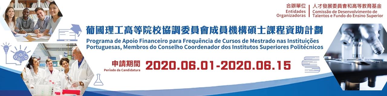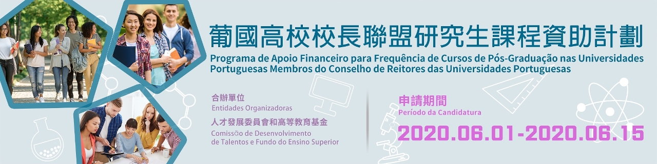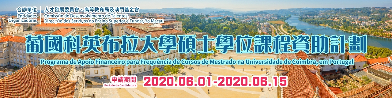 人才发展委员会由六月起推出“葡国科英布拉大学硕士学位课程资助计划” (下称“科英布拉计划”)、“葡国高校校长联盟研究生课程资助计划” (下称“校长联盟计划”)及“葡国理工高等院校协调委员会成员机构硕士课程资助计划”(下称“理工硕士计划”),三个计划定于2020年6月1日至15日期间接受申请,首项计划由澳门基金会支持并与高等教育局合作,第二、三项计划由高等教育基金支持。