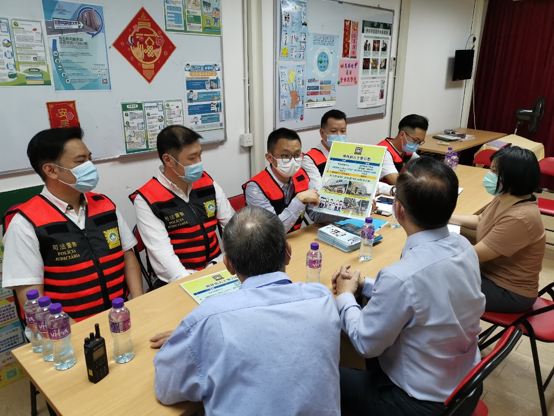 因应本澳已进入台风季节,为提醒市民及早做好应对台风来临的准备工作,在警察总局统筹下,司法警察局人员持续进行“台风期间风暴潮低洼地区疏散撤离计划”宣传工作,向居民讲解防灾应急资讯,收集和更新受风暴潮影响的住户、商户及撤离人员数量和状况等数据;与坊会代表会面交流,并测试供双方在台风期间紧急联络的通讯设备,确保其正常运作。