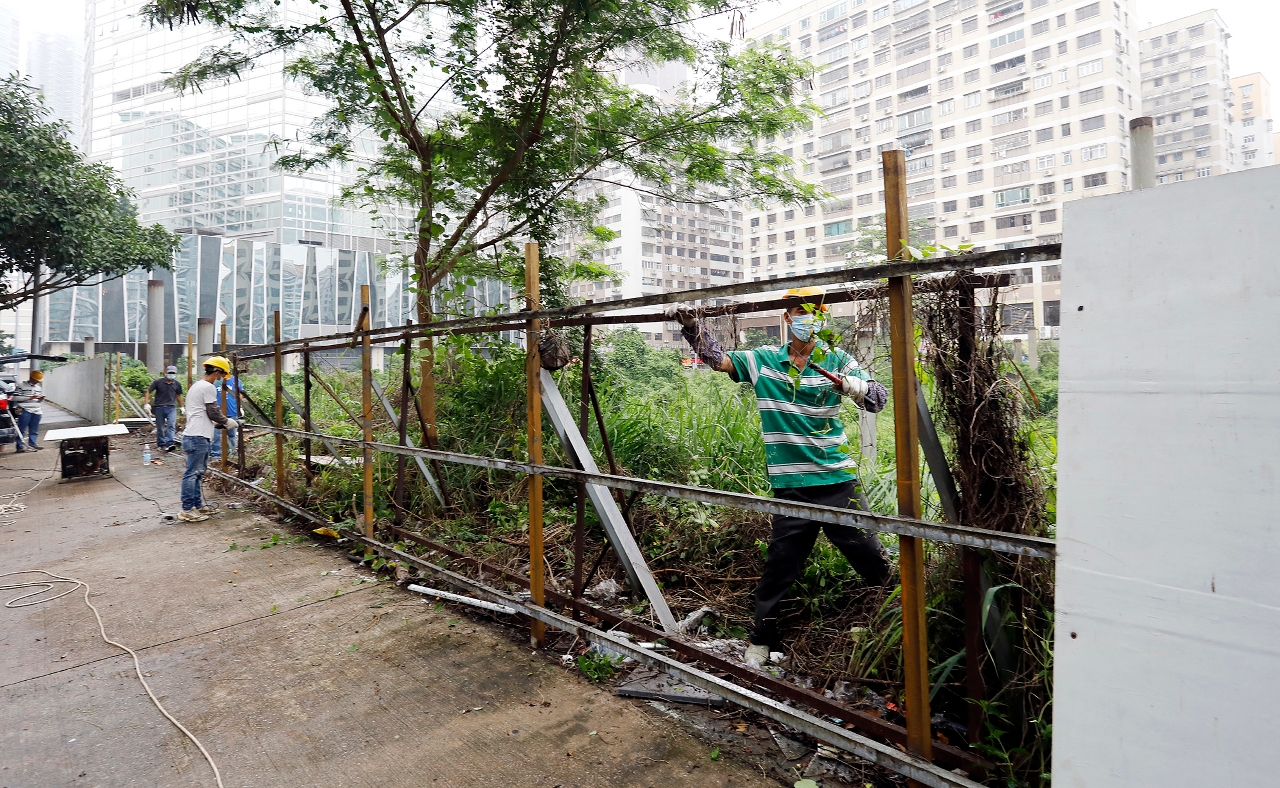 现时有关土地被木板围封,土地工务运输局已向相关利害关系人发出勒迁通知书,要求于限期内腾空并交还土地。鉴于自愿迁离期限届满而相关土地尚未交还,政府今日采取跨部门联合清迁行动,将上述土地收回,并作腾空及清迁整治