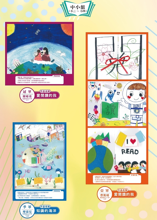 是次比赛以“阅读,伴我成长”为主题,透过绘画及写作等方式,结合阅读和创作,藉以鼓励儿童及青少年扩阔阅读领域,善用图书馆资源。今届比赛澳门区共收到910份参赛作品,美术组别及征文组别之得奬作品共65件。得奬作品将分别于7月1日至12日在澳门中央图书馆、7月18日至31日在石排湾图书馆、8月3日至16日在氹仔图书馆、8月17日至9月13日在何东图书馆以及9月21日至29日在沙梨头图书馆展出。