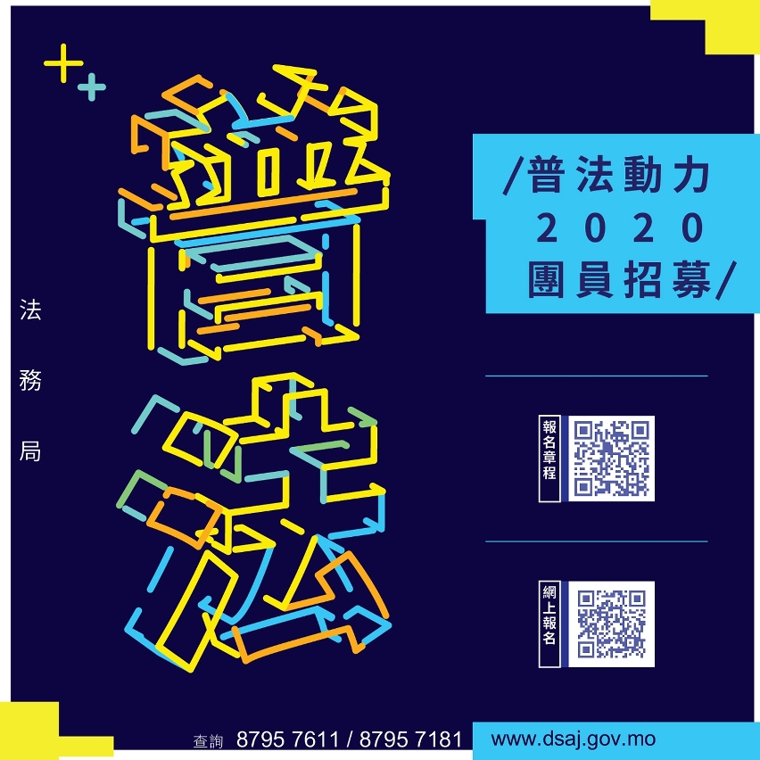 为提供更多机会让青年学生学习《宪法》、《基本法》以及本澳各种法律知识,同时让他们一同参与法律推广活动,法务局青少年义工团队“普法动力”现正招募团员。凡对法律及义务工作有兴趣且在本澳就读中三至大专院校的学生,均可报名参加,截止日期为7月31日。