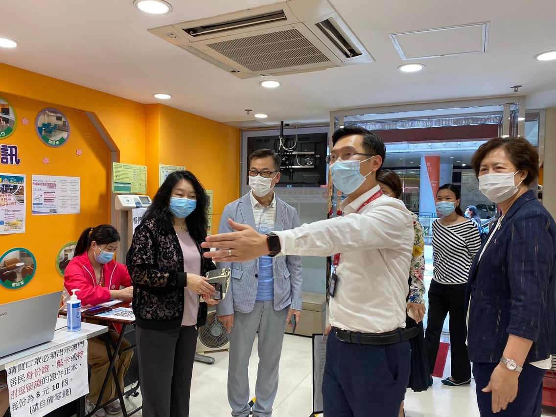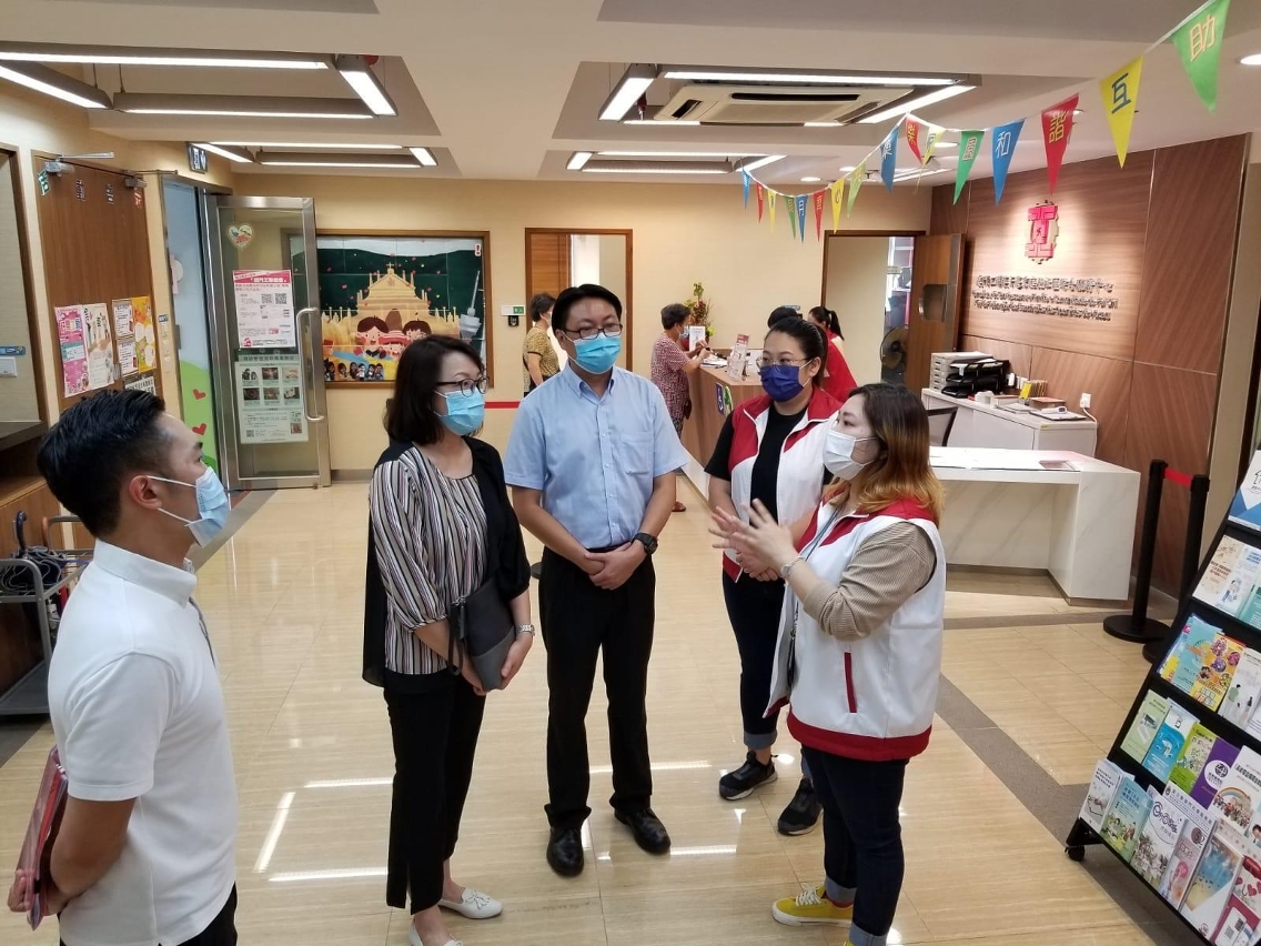 7月1日,许华宝副局长与邓玉华副局长分别视察了澳门基督教新生命团契-SY部落、澳门工联筷子基家庭及社区综合服务中心、佑汉社区中心、妇联乐融家庭综合服务中心,以及泉仁乐家庭综合服务中心,实地了解相关设施首日的情况,运作相当顺畅,各社服设施切实执行各项防控工作,服务使用者亦配合有关的防疫措施。许华宝副局长提醒设施要适时调整服务内容,循序渐进地恢复戒毒青少年外展工作。而邓玉华副局长表示,关注到家庭及社区服务(如情绪辅导和亲职敎育等)对家庭支援的重要性,特别提醒各中心在提供服务时做好防疫措施,保障服务使用者和员工的健康。