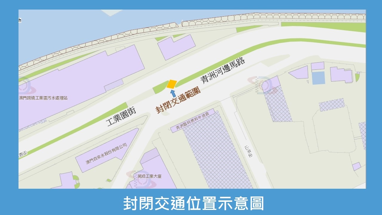 配合市政署水管维修工程,7月27日(周一)至28日(周二),工业园街与青洲河边马路交界实施封闭交通;7月27日上午10时起至28日,8(往回力)、8A(往亚马喇前地)及N4(往筷子基北湾)改道行驶,停靠站点不变。