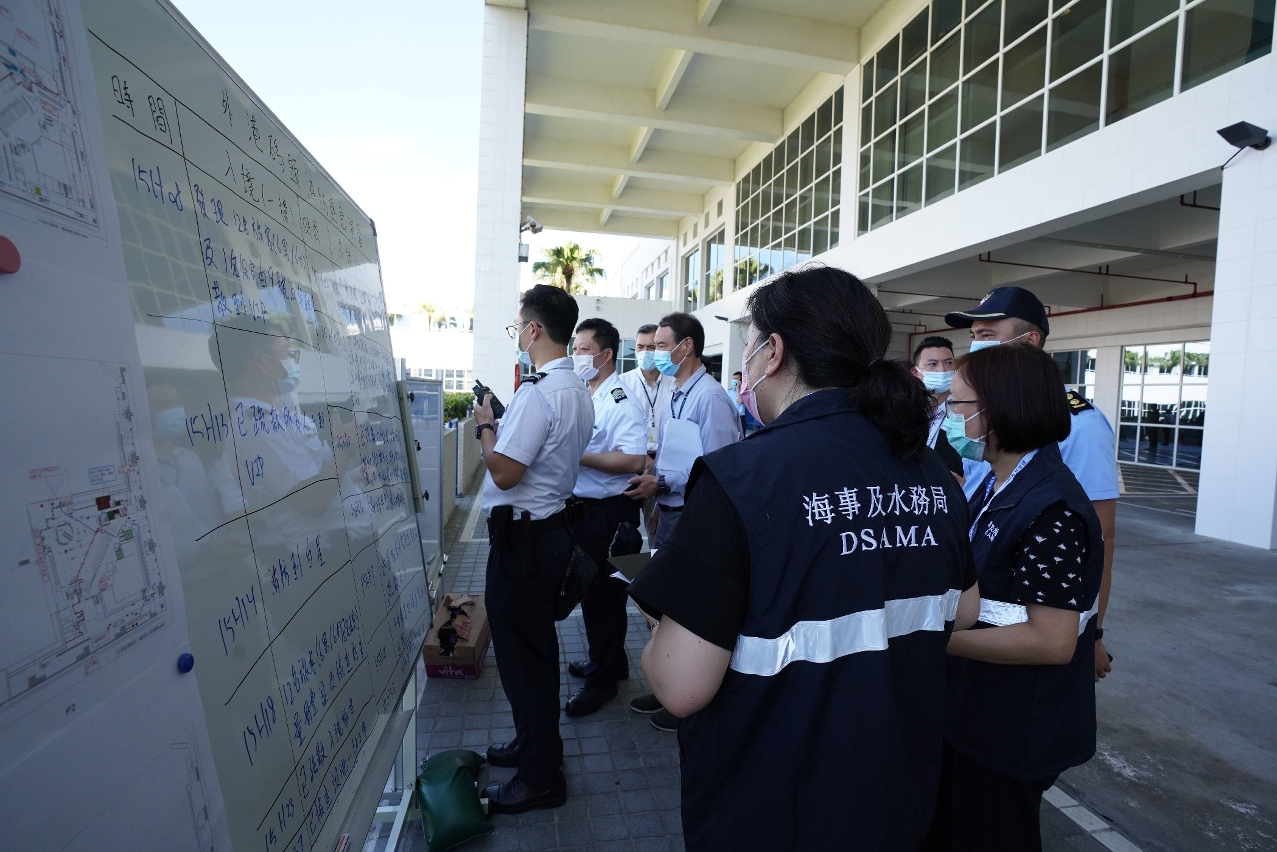 演习历时约三小时,参与的部门及单位包括海事局、消防局、海关、治安警察局、船公司等,合共派出约110名人员参与,过程顺利且达到预期目的。演习结束后各部门和单位进行了检讨,检视过程中各个环节,以便完善各方在码头处理紧急事故时的应变和协调能力。