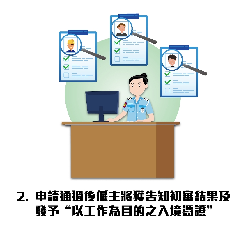 相关法律修改后,来澳从事非专业及家务工作的非居民,于持“以工作为目的的入境凭证”入境澳门时,会获发“雇员身份逗留的临时许可”,雇主与雇员之间的劳动关系随即建立。其后,外地雇员须于相关“临时许可”届满日前,前往北安出入境事务大楼办理“外地雇员身份认别证”手续。此外,需预先申办澳门签证之国家(包括孟加拉、尼泊尔、尼日利亚、巴基斯坦、斯里兰卡及越南)的国民,除持有“以工作为目的的入境凭证”外,还须预先经中国驻外使领馆申办到澳门签证,方可入境澳门工作。