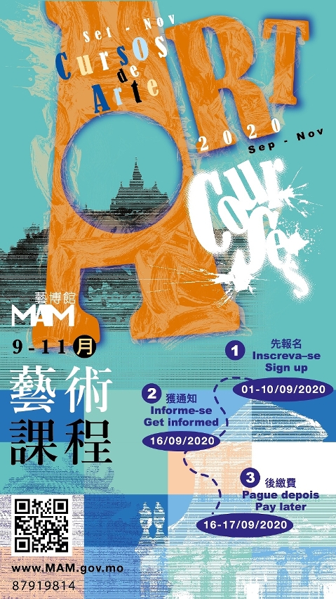 是次课程将结合艺博馆馆藏中的澳门主题艺术作品,鼓励参加者发掘日常生活的艺术题材,体验创作的美好过程。放眼看小城──儿童艺术创作坊、澳门建筑──素描速写班,用画笔描绘澳门建筑的故事;少即是多──亲子创作坊、文青印记──青少年书艺创作坊、纹饰的故事──瓷绘画班、刻版․印象──铜版画初班,透过不同的媒材创作,激活参加者的艺术细胞,完善造诣,发现生活之美。上述课程以抽签录取。