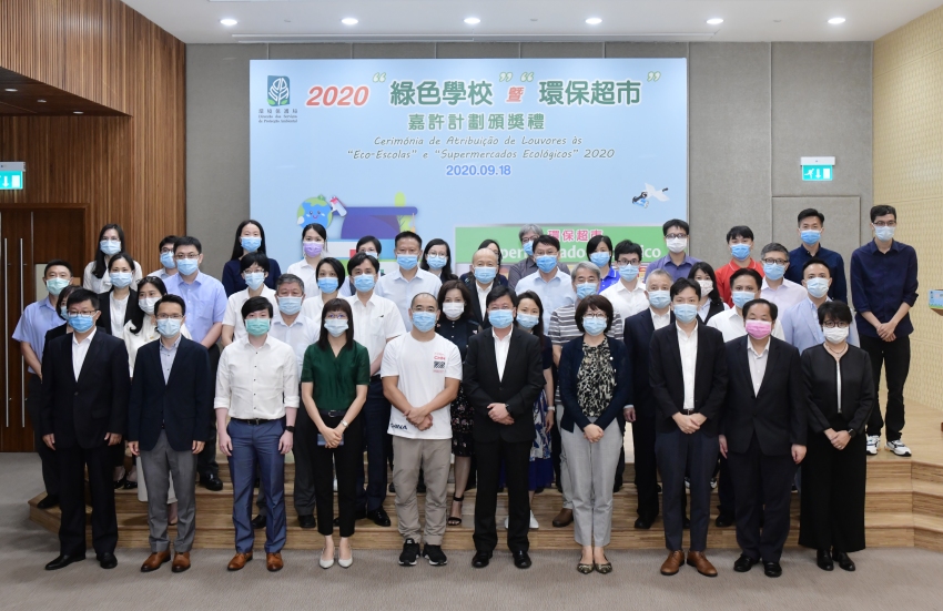 颁奖礼于环保局演讲厅举行,今年合共38间学校参与2020“绿色学校嘉许计划”,经评审最终共28间学校获奖,其中化地玛圣母女子学校、培正中学、圣罗撒英文中学、氹仔中葡学校、濠江中学附属英才学校、澳门大学附属应用学校、澳门浸信中学获颁“绿色学校白金奖”,该奖项为今年首设,以表扬连续五年积极开展环境教育工作的绿色学校。同时,今年共26队获得“环保教案设计奖励计划”奖项,不少作品以网上教学方式推广如胶袋收费、家居环保、干净回收、减废惜食等环保资讯。