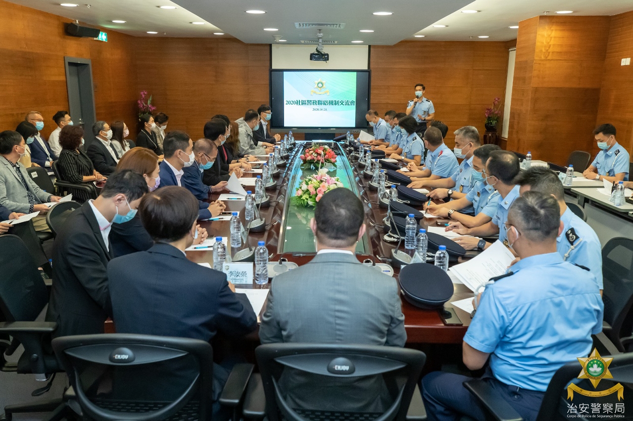 10月23日下午,治安警察局在出入境事务大楼举行「2020社区警务联络机制」交流会,会议由治安警察局吴锦华局长主持,多位社团、坊会领导及代表出席并就社区治安、警民合作等议题作交流。