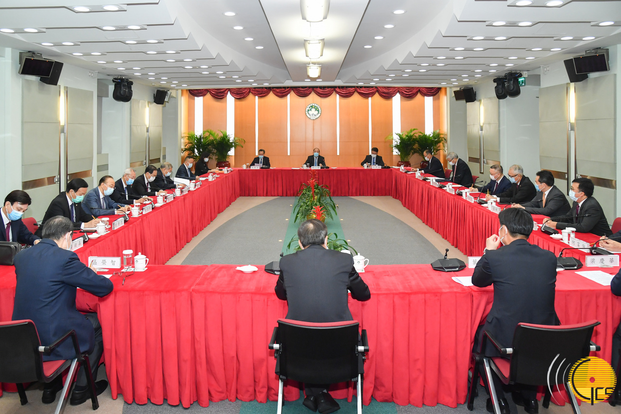 行政长官贺一诚今(27)日在政府总部会见澳门中华总商会理事长高开贤等领导层一行,就特区政府制订2021年财政年度施政报告听取意见及建议。