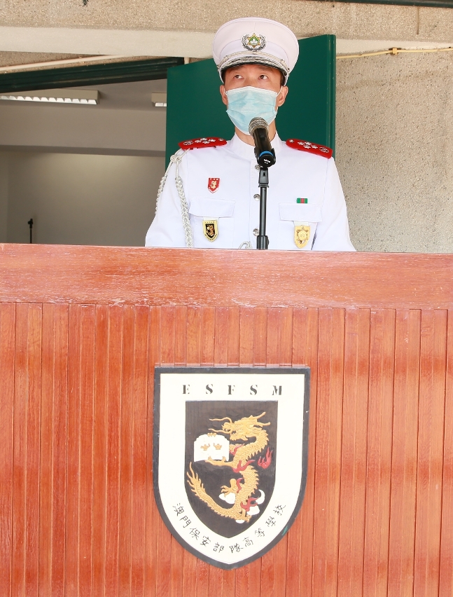 黄子晖校长在结业礼致辞时表示,课程从各方面培育学员成为合资格的海关关员,提醒毋忘初心,认真履行职责,展现澳门保安部队及保安部门专业精干的一面,勉励学员要时刻保持学习态度,不断提升自身能力,忠实履职,不要辜负市民对大家的期望,维护好社会的秩序和安宁。