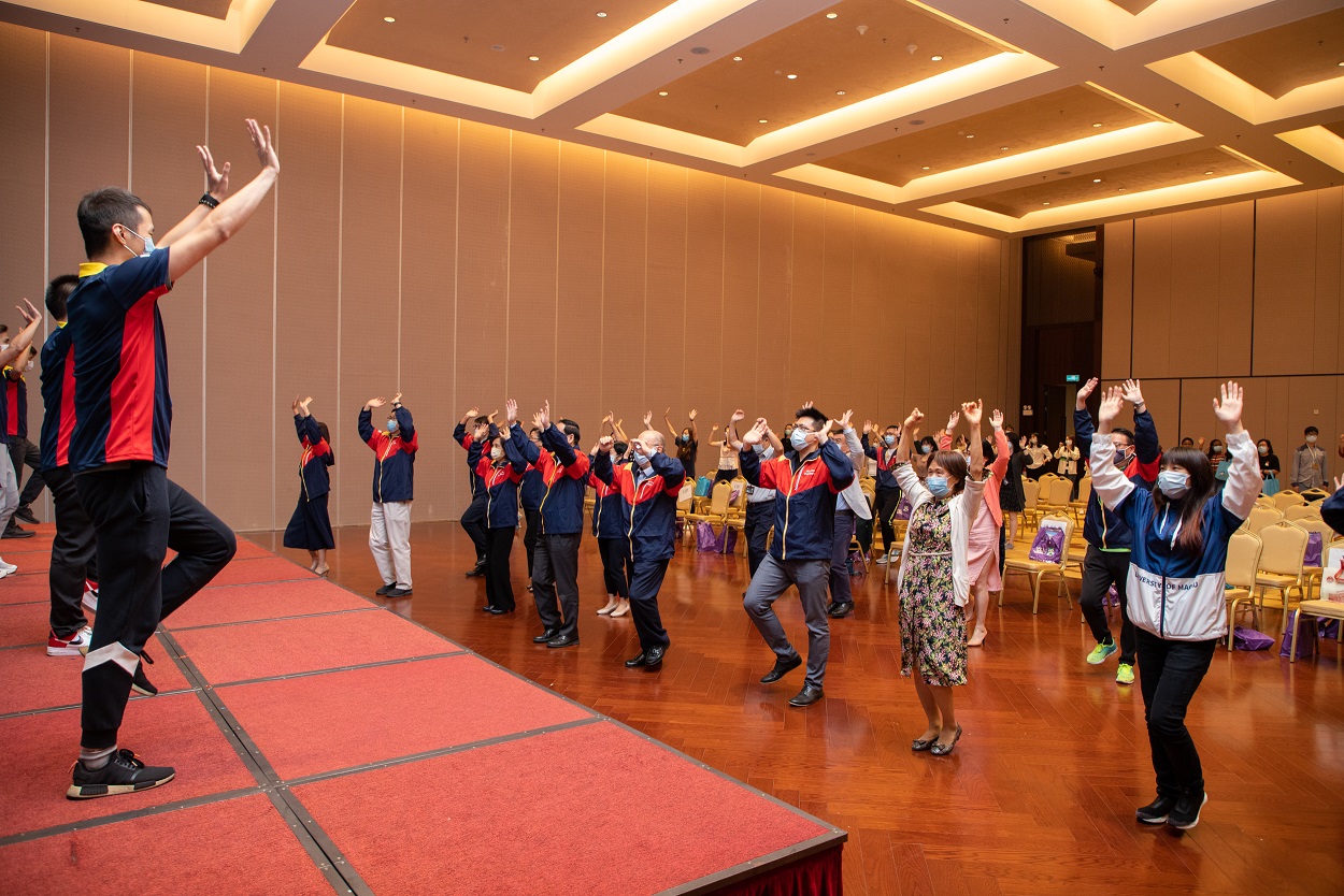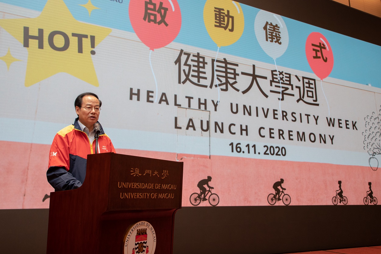 澳大副校长葛伟致辞时表示,二零二零年是特别的一年,在新型冠状病毒肺炎疫情下,迎来了机遇与挑战。澳大积极配合澳门特区政府的抗疫政策,落实执行防疫措施,尽最大努力保障教职员及学生的健康及校园的正常运作。葛伟进一步表示,保持个人卫生及养成健康生活习惯能增强免疫力,是抗疫最基本的一步,提醒大家多做运动、均衡饮食、作息定时、保持身心健康,共同抗疫。