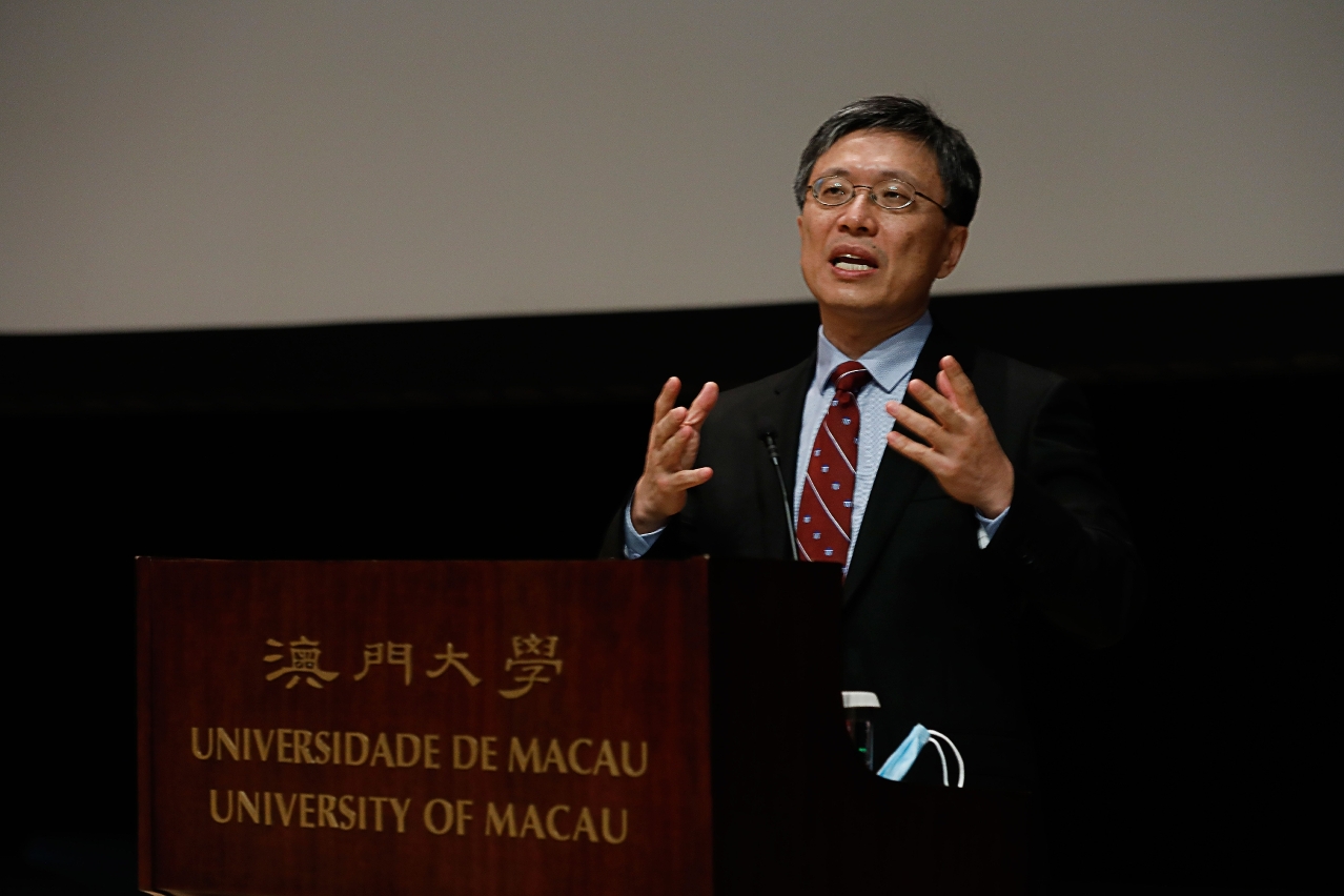 是次讲座由澳门大学主办,澳门浙商联合会合办,在问答交流环节,与会者与讲者交流互动,气氛热烈。