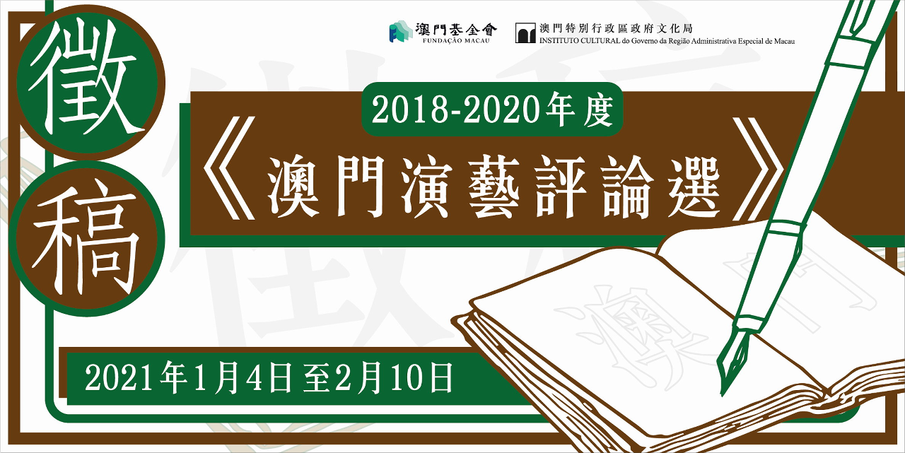 为总结过去三年的演艺评论创作成果及保存资料,以推动澳门演艺事业发展,澳门基金会、文化局再度联合出版《澳门演艺评论选》。现公开征集2018至2020年间发表的澳门演艺评论文章,欢迎有兴趣的作者于2021年1月4日至2月10日期间递交作品。