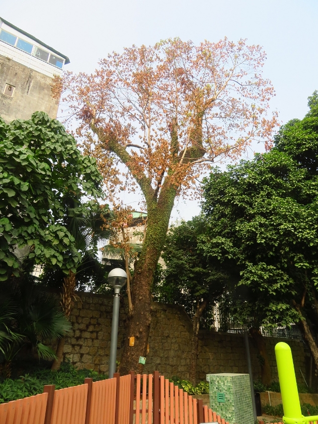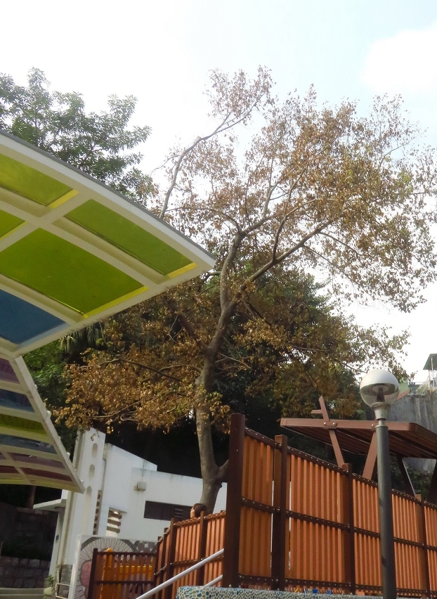 而儿童游乐区旁的假柿木姜子古树较早前亦检测到树干基部,已有十厘米以上厚的木材腐朽变软,经连日救治,情况仍未见明显好转,评估其地下根已基本坏死,现正持续进行救治,但为减低倒塌机会,亦要作控高修剪处理。