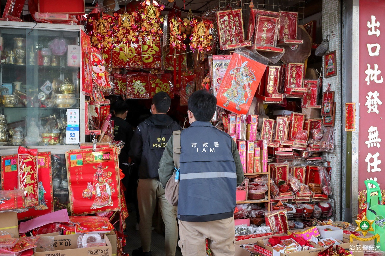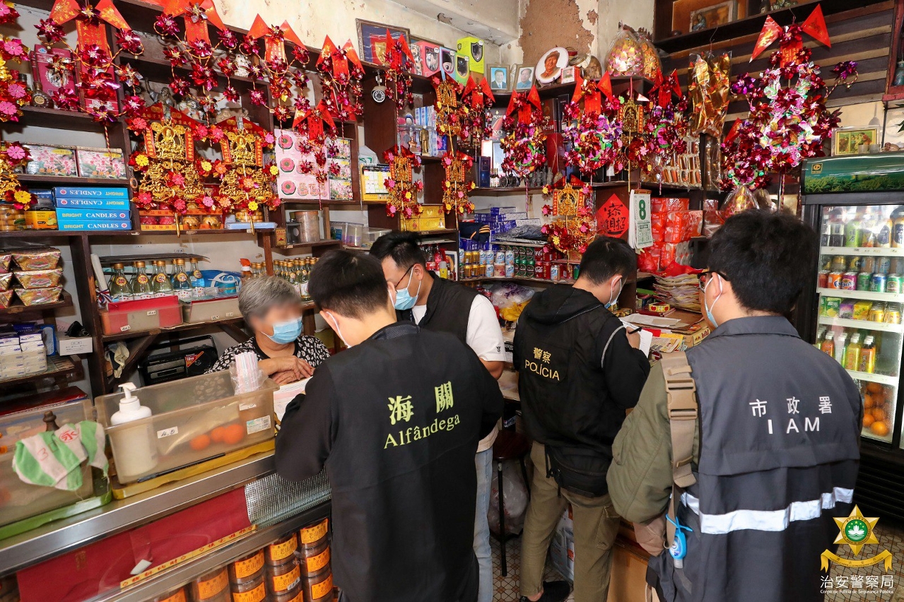 2月8日及9日,治安警察局、澳门海关及市政署进行打击非法入口、贮存及贩卖烟花、爆竹的联合稽查行动,巡查本澳多间售卖贺年用品或香烛的店铺。行动中,三个部门合共派出70人次,巡查了67间店铺,期间没有发现有关烟花、爆竹的违法情况;惟当中发现15间店铺占用公共地方摆卖货品,市政署人员已对相关店铺作出票控,另外,1间店铺未能出示营业税登记,治安警察局已缮立报告转交相关部门跟进。