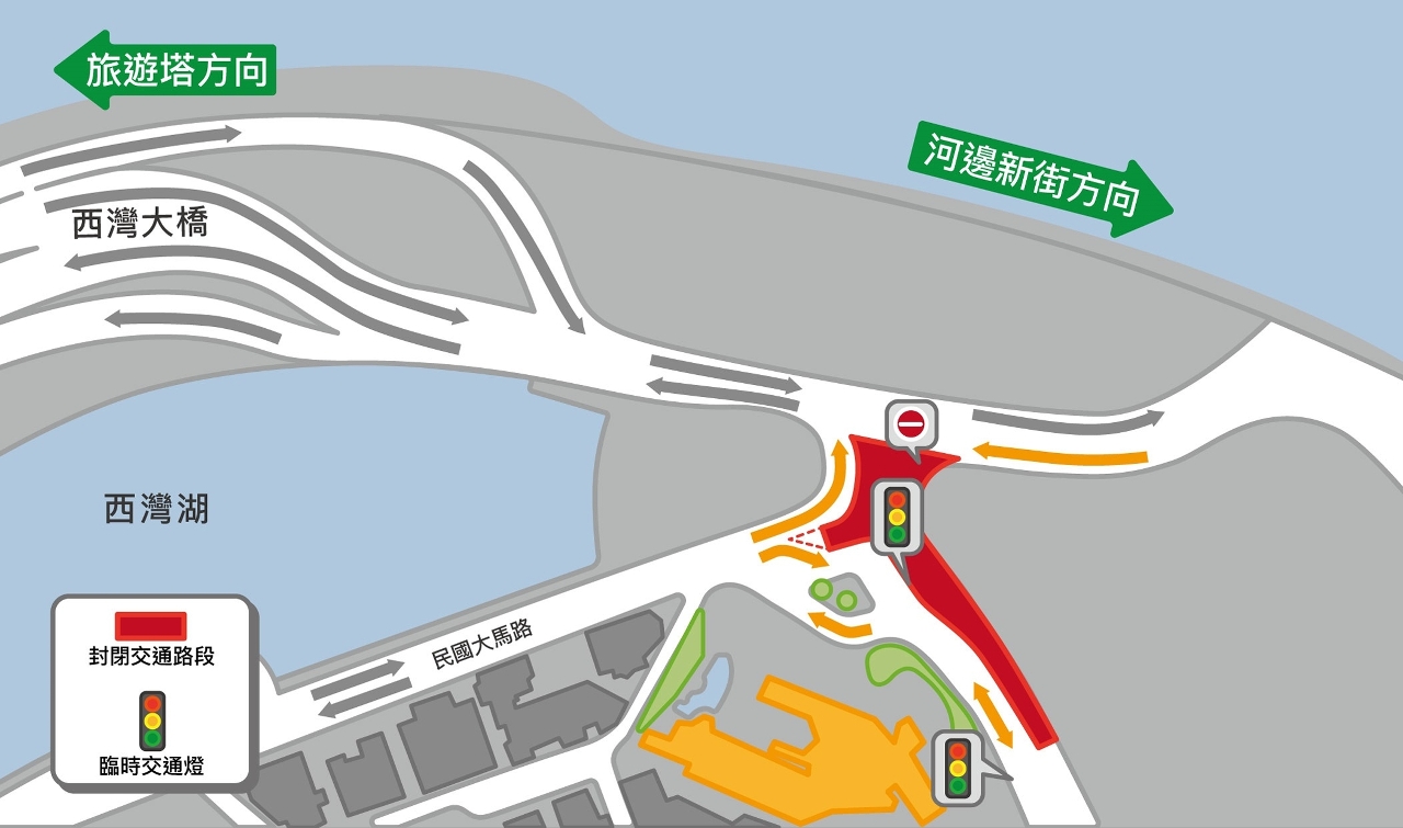 禁止车辆自西湾湖景大马路驶入妈阁上街。 |