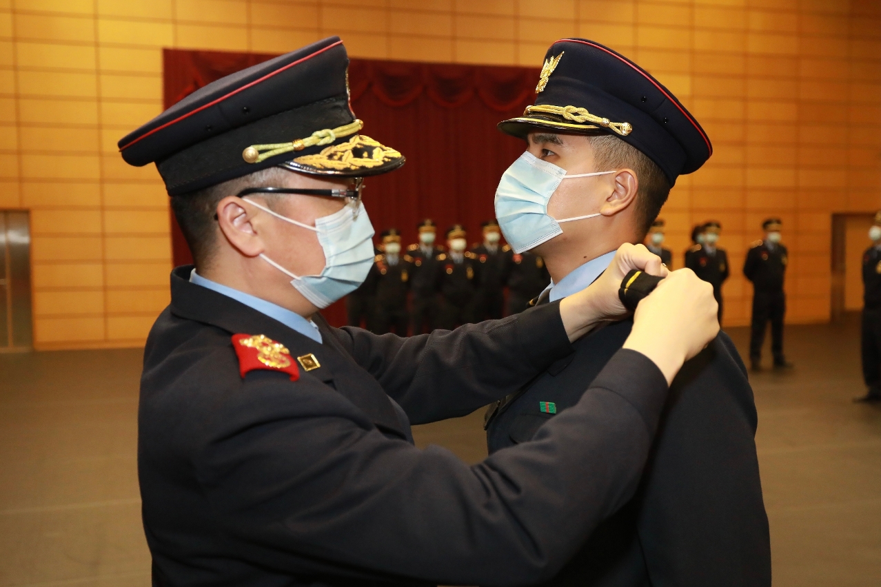 是次获晋升为副消防区长的人员共46名,均经过6个月的专业培训,包括共同、专业及实习三个阶段,且经考核合格才获晋升为副消防区长。课程内容主要学习消防技术专业知识,包括灭火技术、化学、生物及放射之安全、策略之运用、建筑学、救护学、消防系统之查验及监察技巧、事故指挥系统、防火安全规章及相关法例。