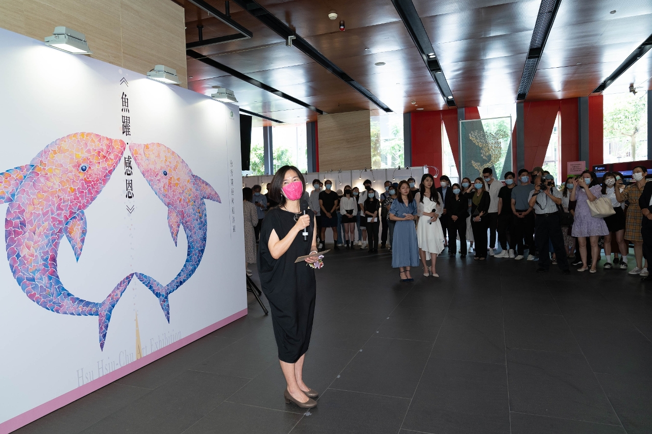 开幕仪式上,徐秀菊表示,是次展览旨在透过艺术创作,将其人生经验、文化体验和生命体悟等各种心境呈现出来。展览主题为“鱼跃.感恩”,代表对身边所有人、事、物的感谢与感恩。这也是她始终坚持积极乐观人生态度的具体表现,期望以一种有温度和有人情味的方式,向社会传递正能量。开幕仪式后,主礼嘉宾一同欣赏展出作品。