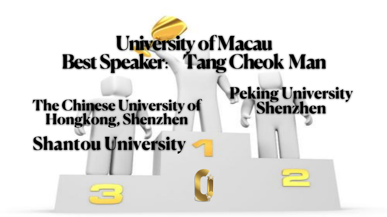 今届华南区比赛共吸引了北京大学深圳研究院、武汉大学、中山大学、香港中文大学(深圳)等60支高校队伍参赛,参赛选手分别就政治、经济、民生、文化等话题展开历时两天共71场的激烈辩论。澳大英语辩论队经过五轮激烈的辩论,以首名成绩晋级总决赛。在总决赛中,澳门大学以出色的辩论技巧及经验击败北京大学深圳研究生院、香港中文大学深圳、汕头大学等强队后,荣获冠军。来自澳大社会科学学院、荣誉学院、吕志和书院的周咏怡及社会科学院、荣誉学院、满珍书院的唐卓文并列获得“全场最佳辩手”的称号,而唐卓文更获得“总决赛最佳辩手”。