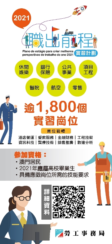 为协助初入职场的应届大学毕业生拓展更宽阔的职业路,今年6月劳工局将继续举办 “职出前程实习计划”,并在去年合作的休闲企业、金融业、公共事业机构的基础上,扩大合作机构范围至医疗、航空、建筑及零售等行业,共收到1,874个实习岗位,主要涉及酒店餐饮业的前线营运、工商金融、信息科技、数据分析、建筑工程及医疗卫生等相关专业学科;实习企业合共42间,期望能为青年提供多元的实习机会。